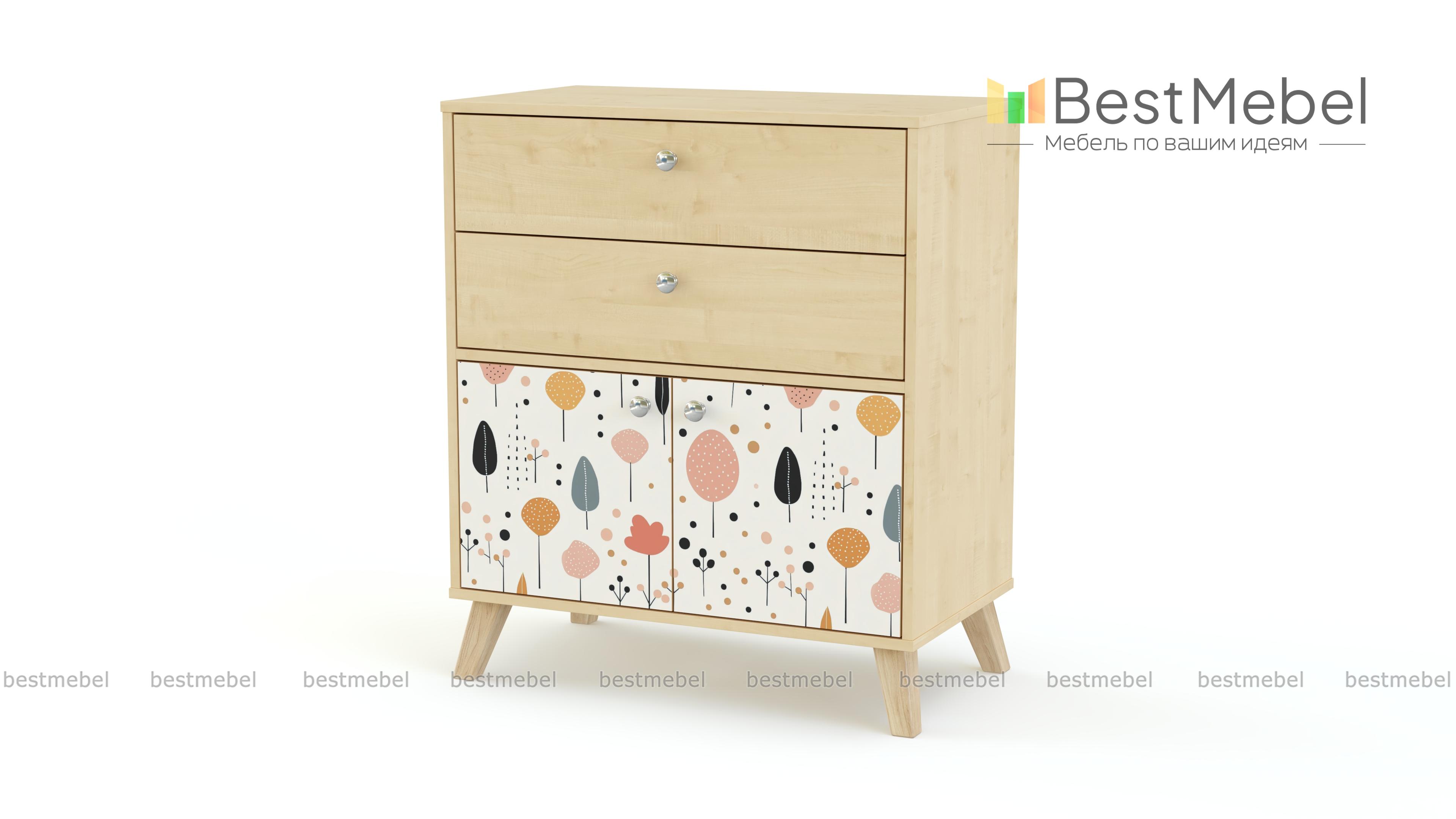 Комод Эльза 2 BMS — компактный и функциональный, создан для современной детской. Модель с высокими ножками, удобными округлыми ручками и нежным принтом хорошо дополняет мебель разной стилистики. Два выдвижных ящика и отделение с дверцами подойдут для хранения одежды ребенка, постельного белья и игрушек, а на столешницу можно положить книжку или поставить ночник. Купить комод Эльза 2 BMS приглашаем в наш интернет-магазин, подобрав фурнитуру и цвет по каталогу.