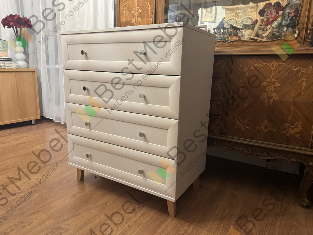 Комод Роксолана Люкс МДФ BMS – солидный и элегантный в насыщенных древесных тонах, оснащен парными ручками-кнопками для удобного пользования. Модель на высоких скошенных ножках станет элементом дизайна интерьера в классическом или ретростиле. В четырех выдвижных ящиках удобно хранить одежду, домашний текстиль и всевозможные мелочи, а на столешнице выигрышно смотрятся предметы декора. Купить комод Роксолана Люкс МДФ BMS приглашаем в наш интернет-магазин.