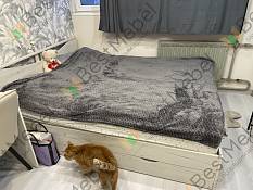 Покупал эту кровать ещё летом 2023 года а сейчас ноябрь 2024, почти 2025 год. Кровать очень нравится, красивая и прочная. За это время с ней ничего не случилось, как новая. Ящики внизу тоже очень удобные, вместительные. Прочная, выдерживает большую нагрузку. Ну и самое главное это внешний вид, ради него и покупал. Есть похожие и подешевле но эта выглядит как-то солиднее .