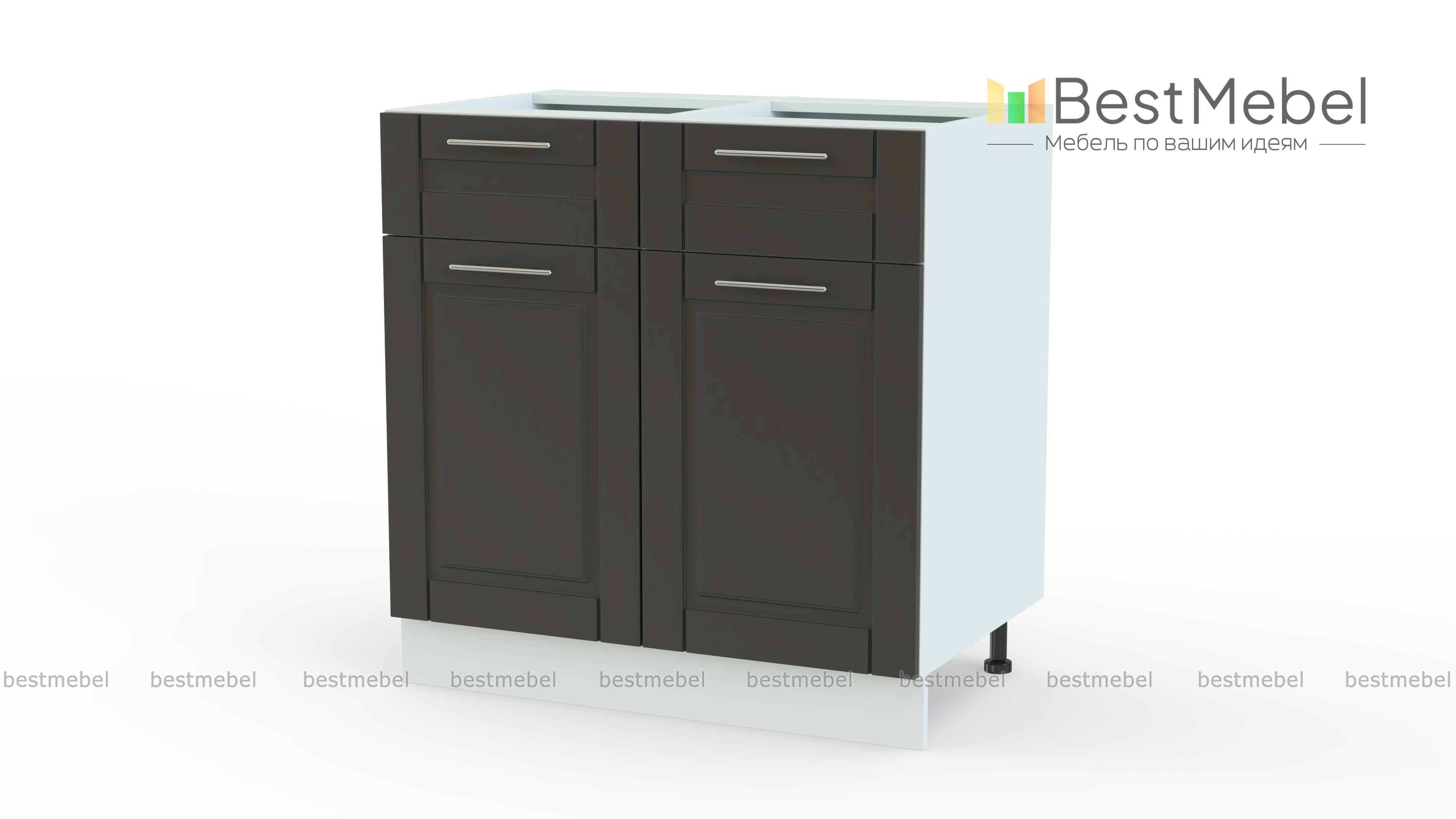 Шкаф нижний 2 двери 2 ящика Палермо BMS – это простота конструкции в сочетании с высокой функциональностью. Напольная тумба оборудована распашным отделением с полкой и двумя выдвижными ящиками под широкой столешницей, что позволит разместить мелкую бытовую технику, столовые приборы и габаритную посуду или продукты. Филенчатые фасады выполняются в стильных расцветках и гармонично впишутся в интерьеры стиля кантри или классические. Купить шкаф нижний 2 двери 2 ящика Палермо BMS вы сможете по доступной цене в нашем интернет-магазине.