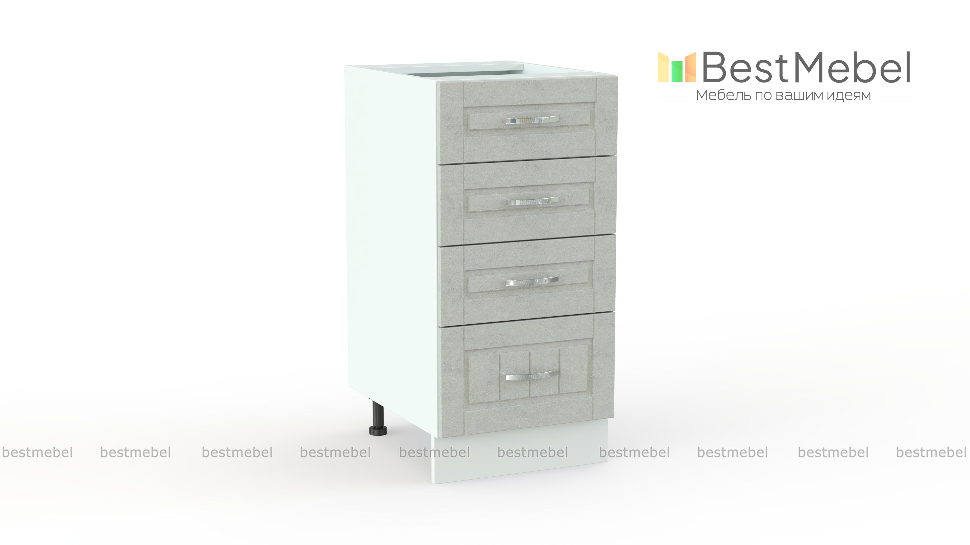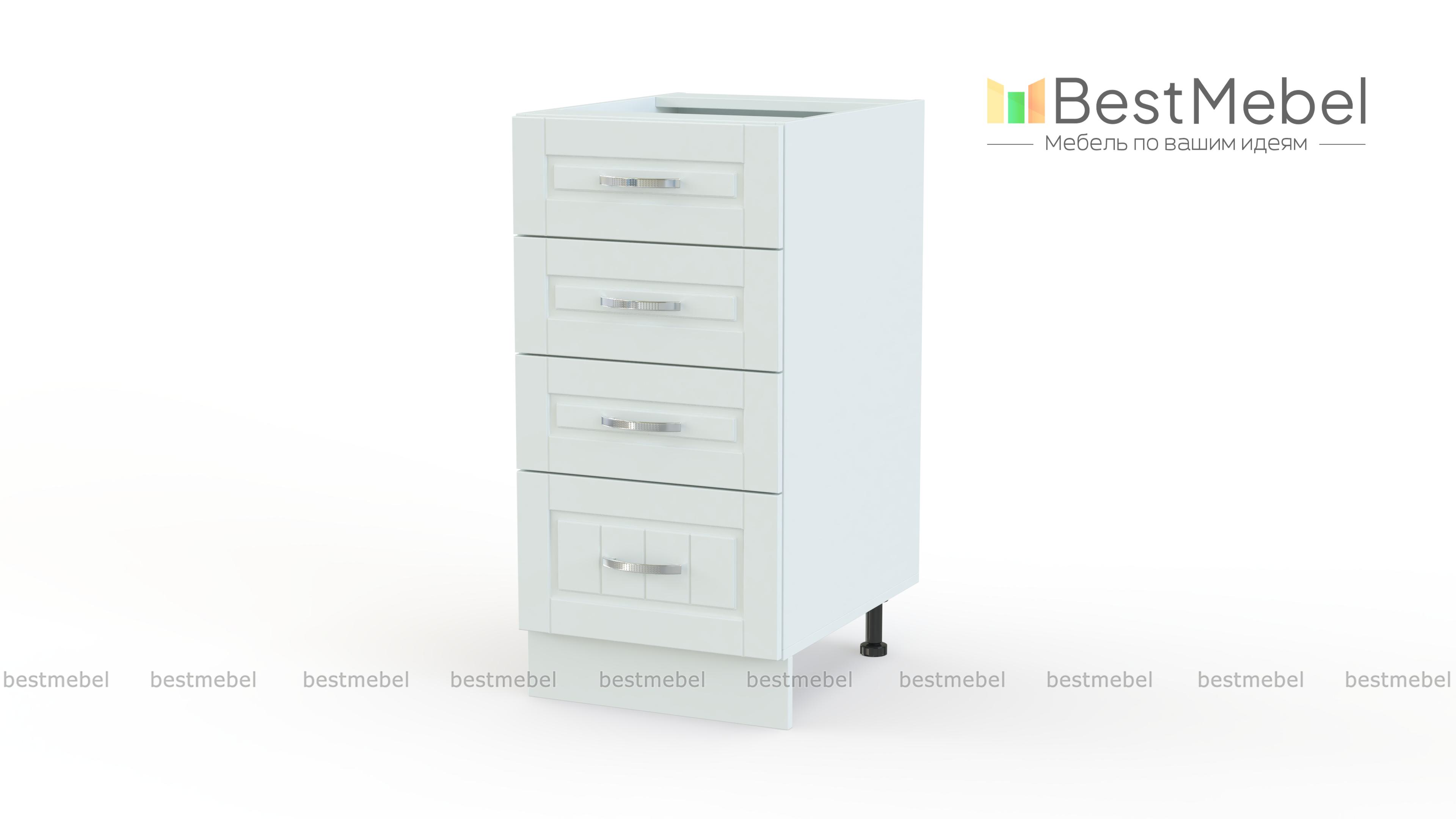 Шкаф нижний Лондон 4 ящика BMS незаменим в практичном кухонном гарнитуре и поможет оптимизировать хранение мелочей. Компактная тумба оборудована тремя малыми и одним большим выдвижными ящиками, в которых будут всегда под рукой столовые приборы и разнообразные кухонные аксессуары. Рамочные фасады светлого оттенка с вертикальной фрезеровкой станут частью уютного домашнего интерьера. Купить шкаф нижний Лондон 4 ящика BMS приглашаем по доступной цене в наш интернет-магазин.
