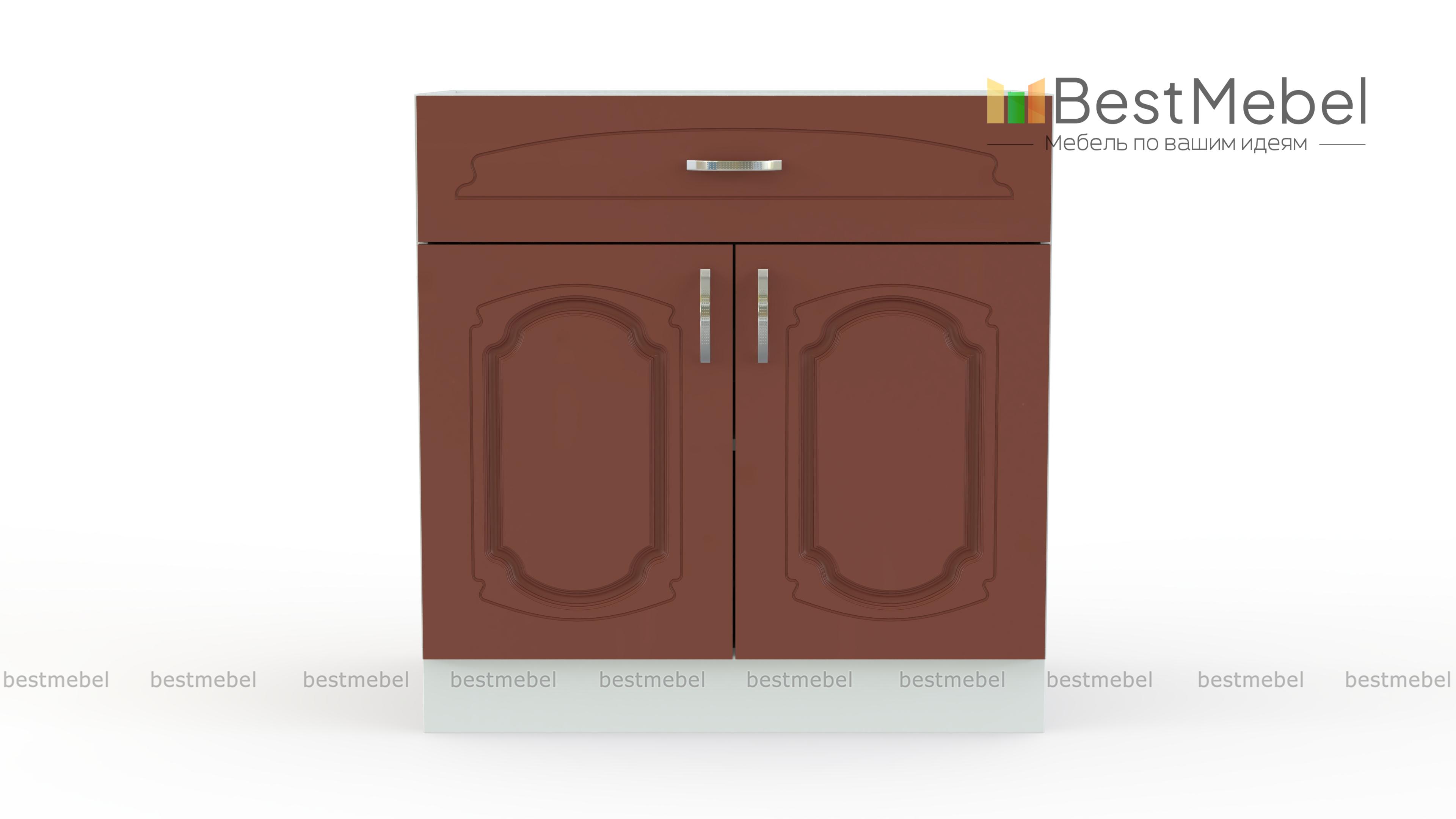 Шкаф нижний с 2-мя дверцами и ящиком Настя BMS – незаменимый элемент функционального модульного комплекта для кухни. Классический шкаф оборудован двумя типами отделений – широким выдвижным ящиком и распашным с полкой, что позволит разместить как столовые приборы, так и крупные кухонные аксессуары. Фасады теплых тонов с фрезерованным рисунком станут украшением традиционного домашнего интерьера. Купить шкаф нижний с 2-мя дверцами и ящиком Настя BMS, подобрав необходимые параметры, приглашаем в наш интернет-магазин.