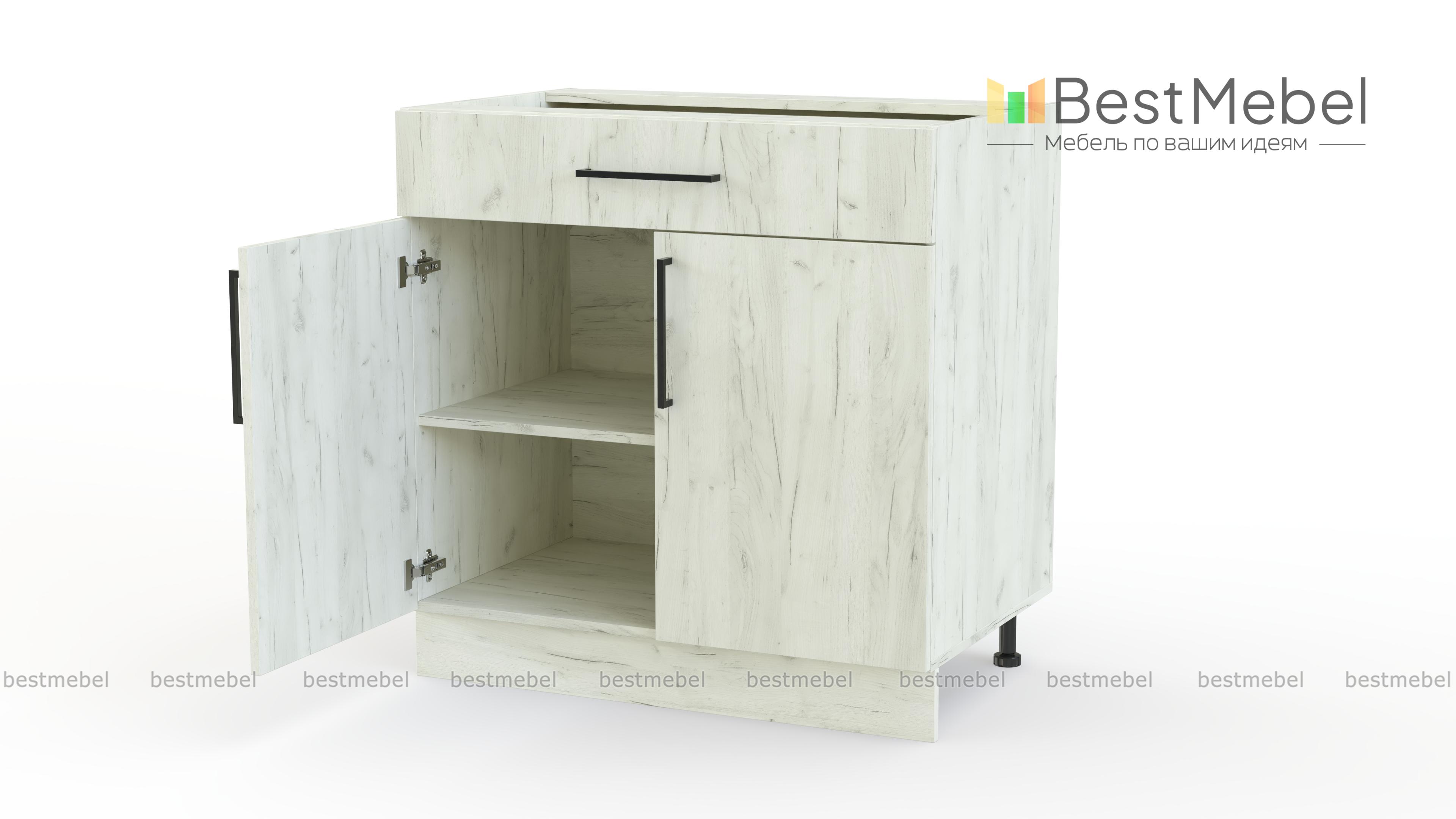 Шкаф нижний с ящиком Лайт BMS поможет разместить под рукой столовые приборы и кухонные мелочи, а для посуды и продуктов предусмотрено распашное отделение с полкой. Выполненный в нейтральном оттенке из прочной ламинированной плиты, шкаф надежен в эксплуатации и легко вписывается в современный интерьер. На фасады выдвижного ящика и двух дверей установлены стильные накладные скобы. Купить шкаф нижний с ящиком Лайт BMS вы сможете в нашем интернет-магазине с учетом необходимых размеров.