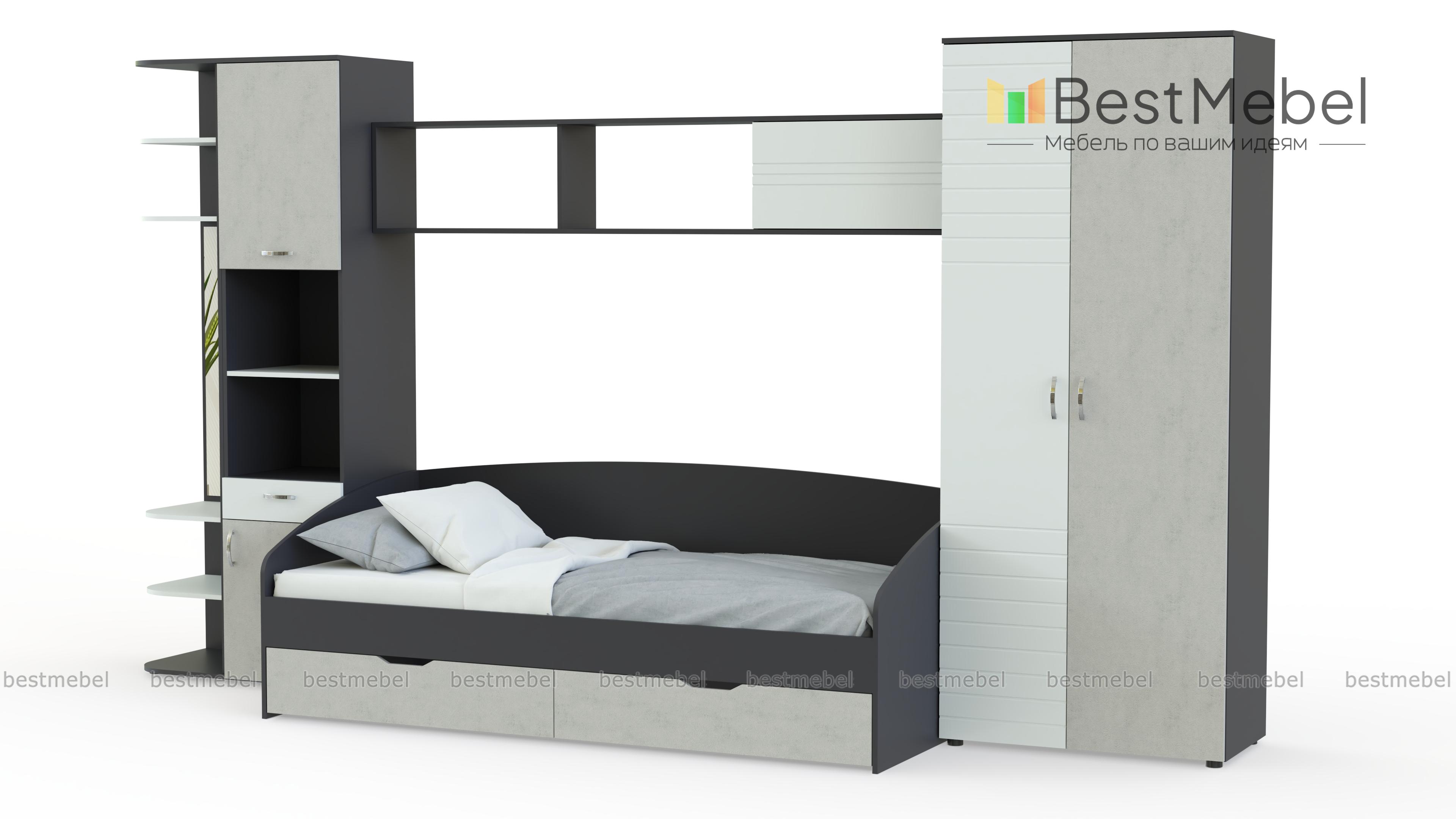 Детская мебель Манхэттен BMS будет отличным решением для организации пространства подростковой комнаты. Мебель в нейтральных древесных тонах с контрастными однотонными вставками создаст спокойную, комфортную атмосферу, а разнообразие отделений позволит компактно разместить все необходимое, от одежды до школьных и спортивных принадлежностей. В комплект входят двухдверный шкаф, просторная софа с бельевыми ящиками, комбинированный шкаф и практичный торцевой стеллаж с открытой вешалкой и зеркалом. Купить детскую мебель Манхэттен BMS вы всегда сможете в нашем интернет-магазине.