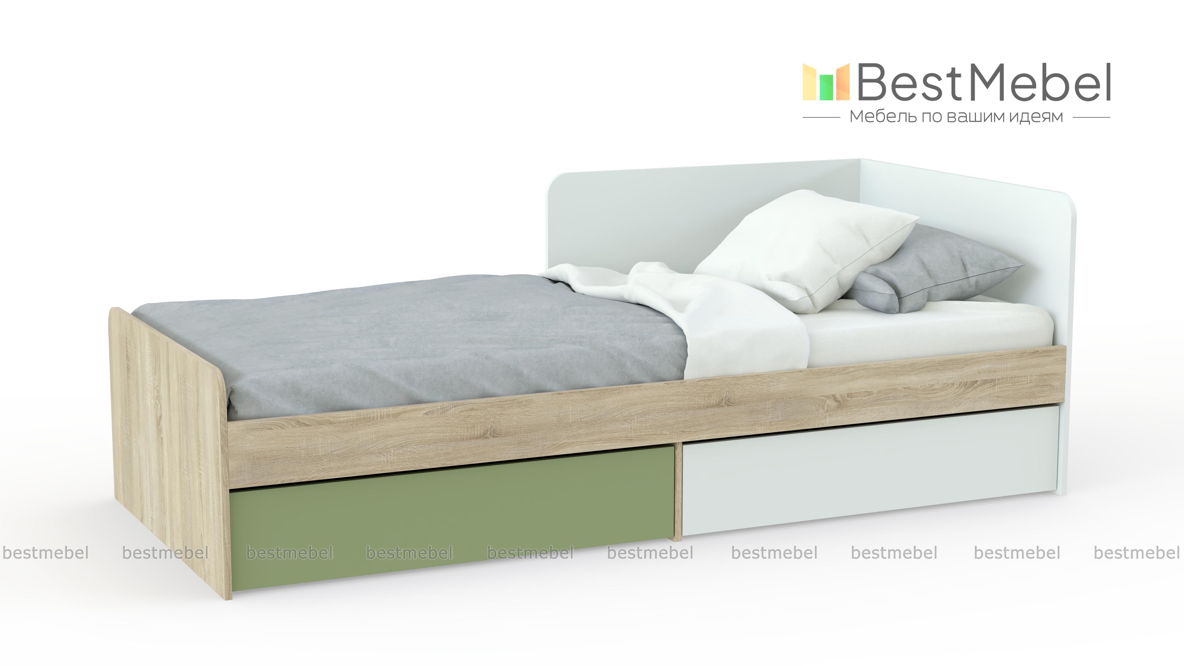 Кровать с 2-мя ящиками Jackie BMS – практичное решение для современных молодежных комнат. Строгий геометричный дизайн модели подчеркивает контрастная расцветка – древесные тона и яркие вставки. Объединившая функции кровати и тахты, модель подарит комфортный отдых и полноценный сон, а разместить постельные принадлежности, сэкономив полезную площадь, помогут выдвижные ящики в основании. Купить кровать с 2-мя ящиками Jackie BMS, которая порадует владельцев не только эстетичным видом, но и функциональностью, приглашаем в наш интернет-магазин.