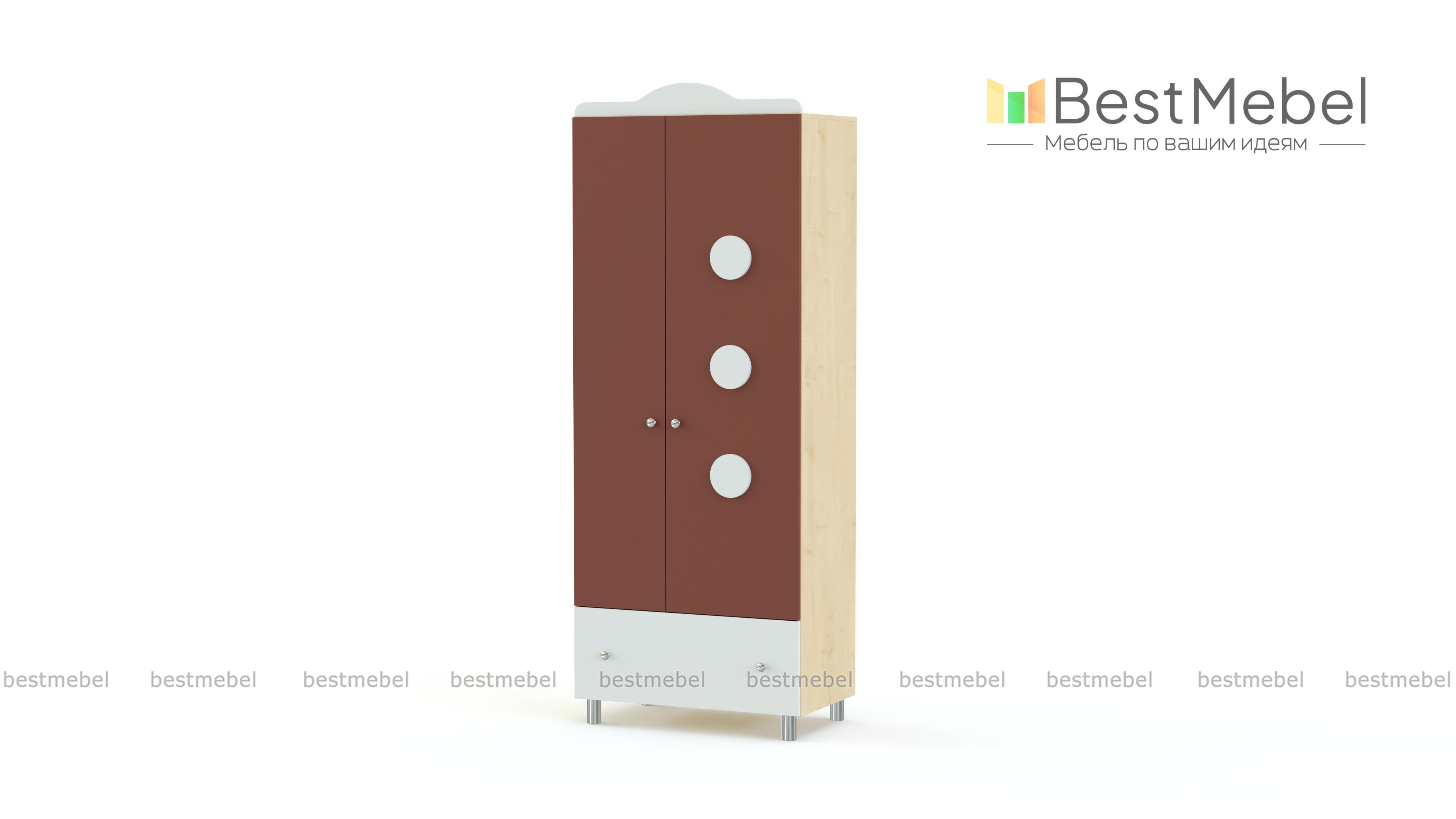 Шкаф Принцесса BMS выполнен в пастельных тонах с небольшими яркими акцентами. В распашном отделении со штангой можно аккуратно хранить одежду на вешалках, а для мелкого трикотажа использовать выдвижной ящик в основании. Шкаф с фигурно вырезанным карнизом располагается на высоких круглых ножках, которые визуально облегчают пространство и делают проще уборку в комнате. Купить шкаф Принцесса BMS вы сможете в нашем интернет-магазине, подобрав цвета и размеры.