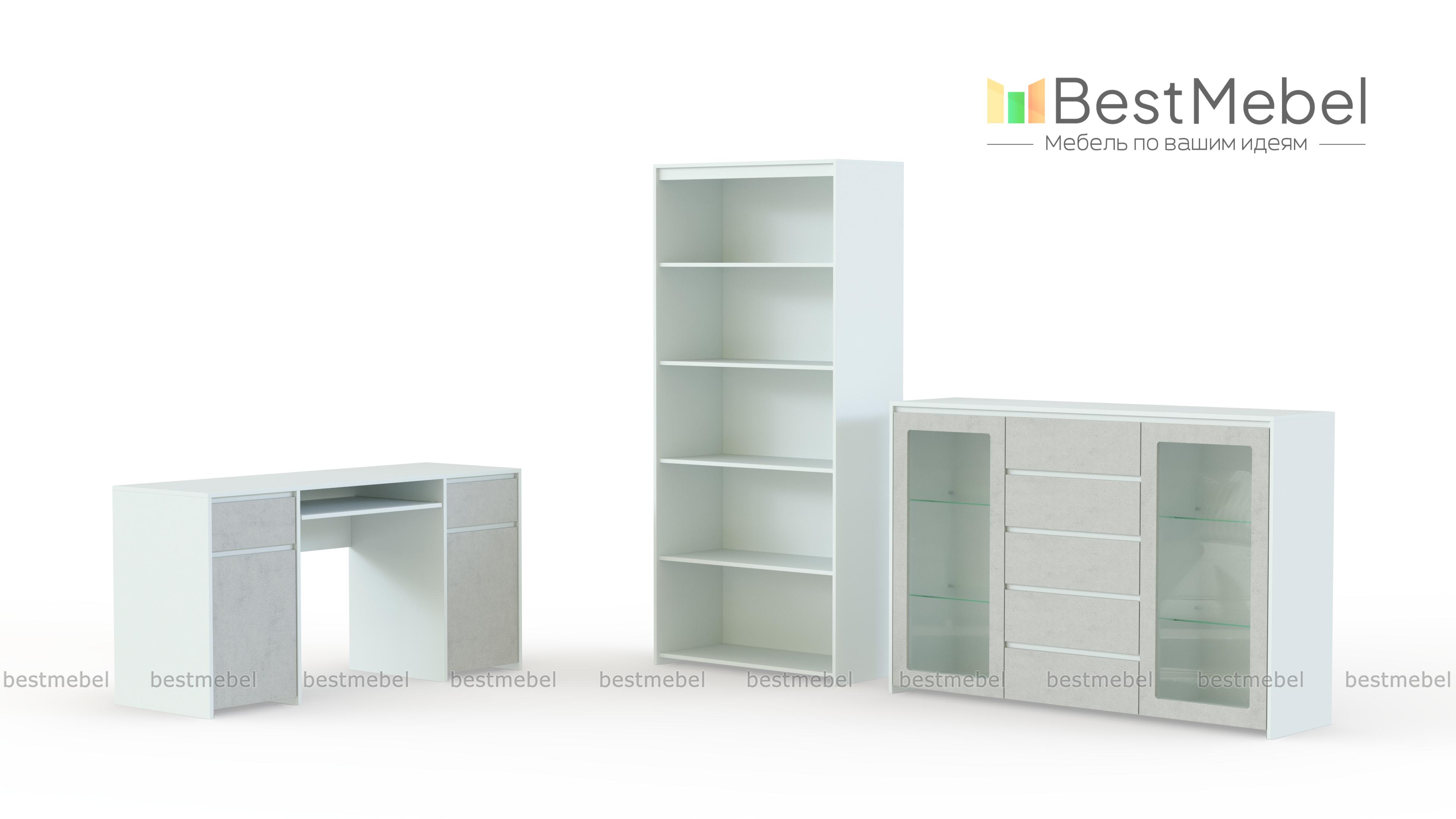 Стильный кабинет Каспиан для тех, кто любит лаконичный дизайн, простые линии и практичность. В комплект входит письменный стол, стеллаж и комод. Мебель имеет потайные ручки, и LED подсветку.