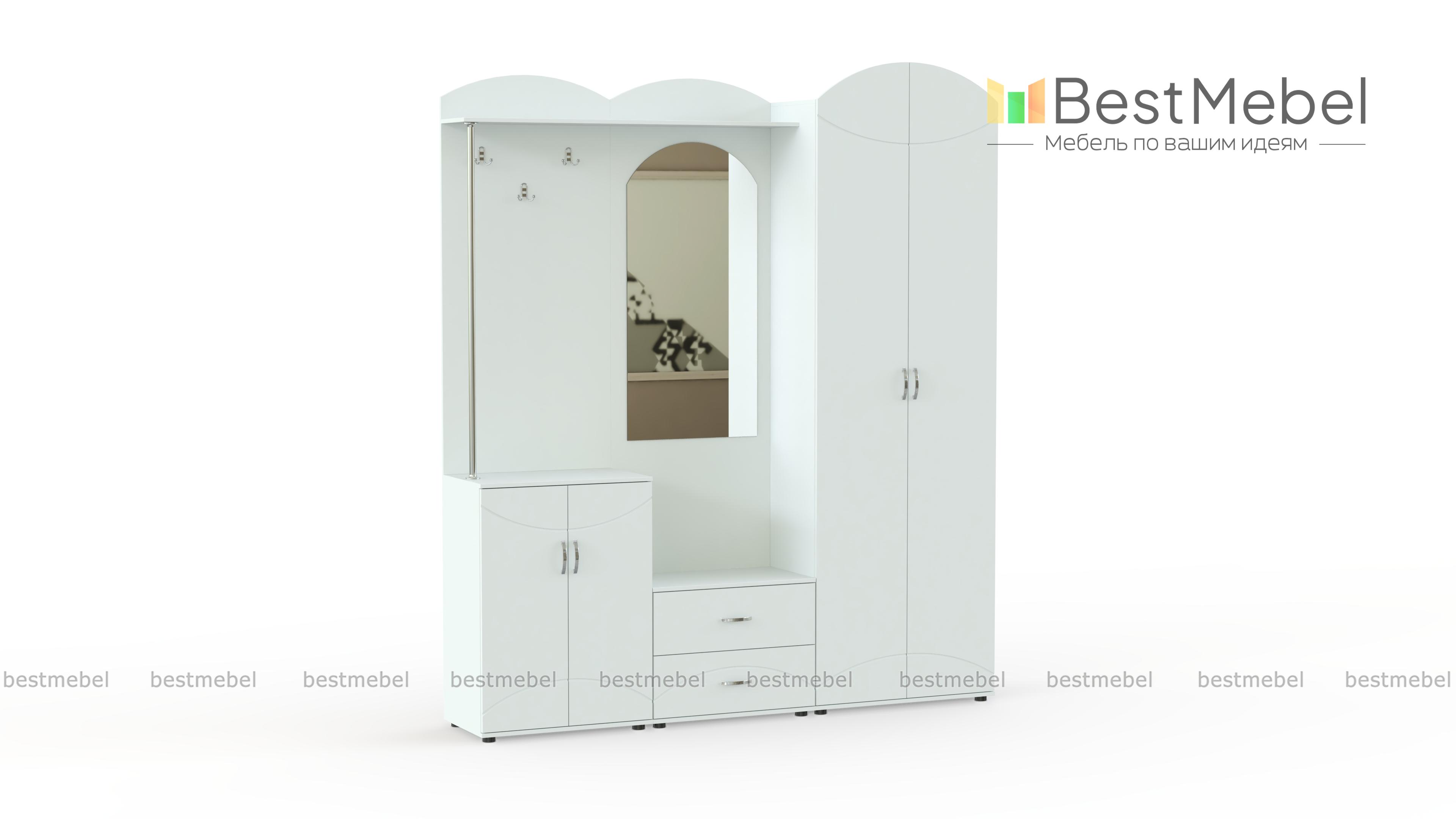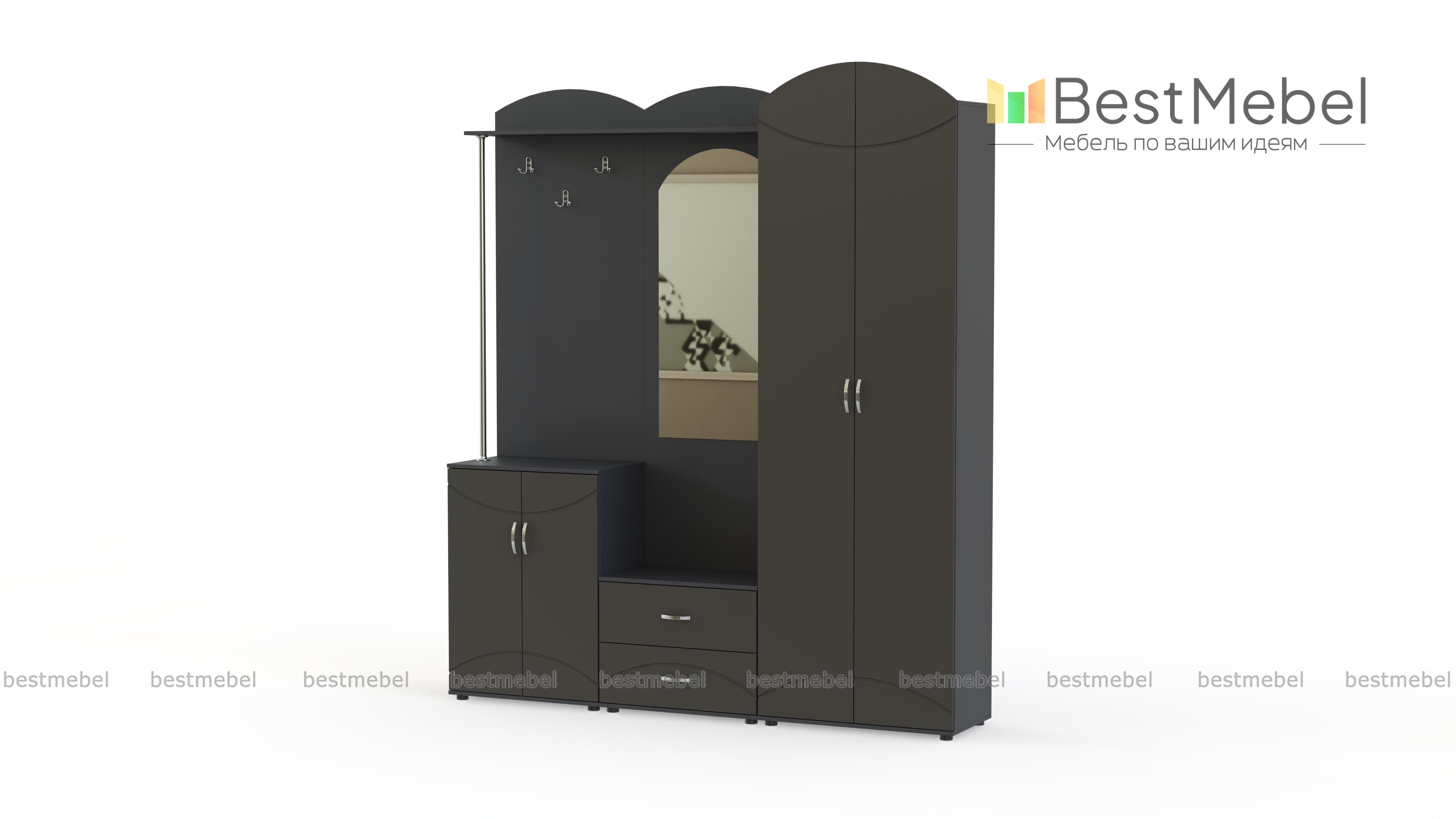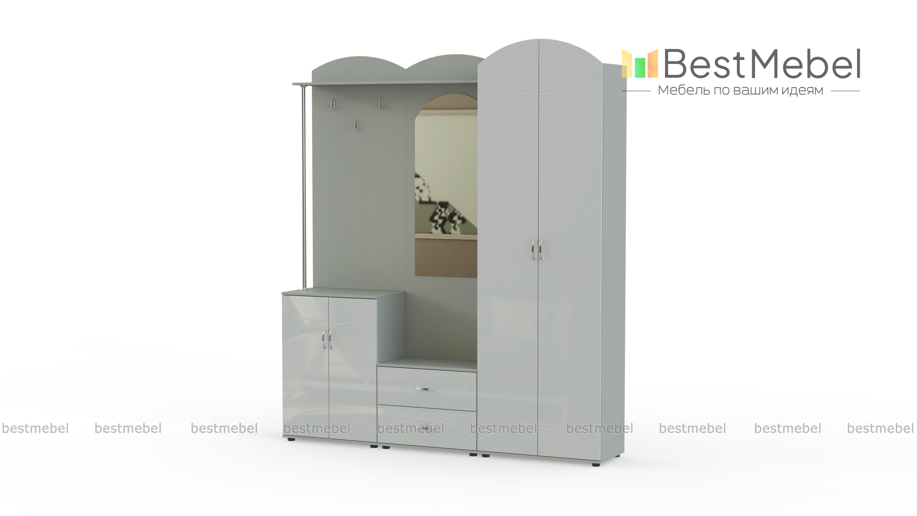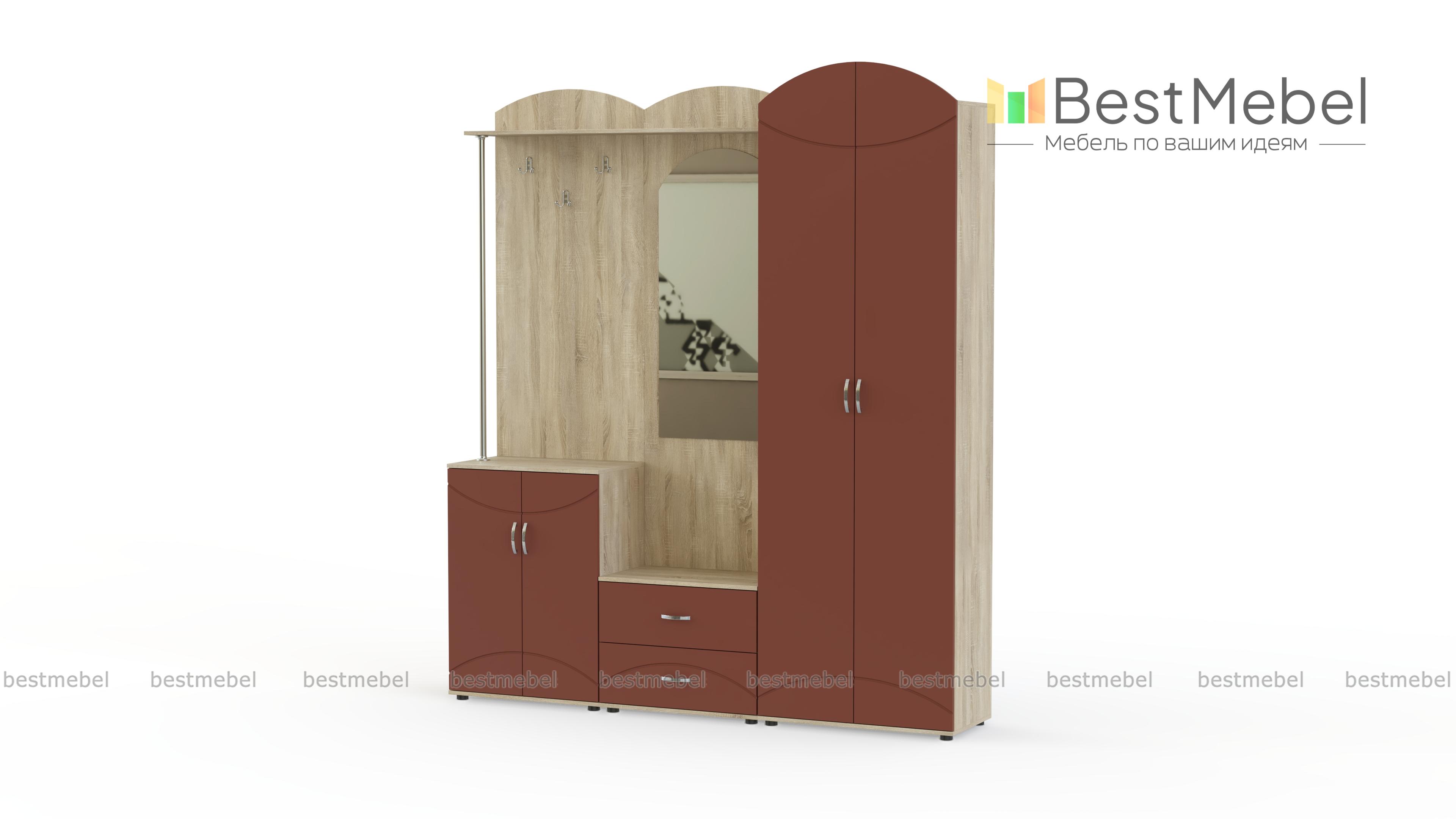 Екатерина МДФ BMS – вместительная прихожая, чьи гармоничные пропорции, насыщенные древесные оттенки и изящный декор порадуют любителей классики. Одежда, обувь и аксессуары компактно разместятся в двухдверном шкафу, двух тумбах, на открытой вешалке и полочке, а оценить внешний вид перед выходом поможет большое зеркало. Скругленные вырезы дверей и панелей повторяют фрезерованный рисунок на фасадах. Купить прихожую Екатерина МДФ BMS, подобрав подходящий вариант расцветки, вы сможете в нашем интернет-магазине.