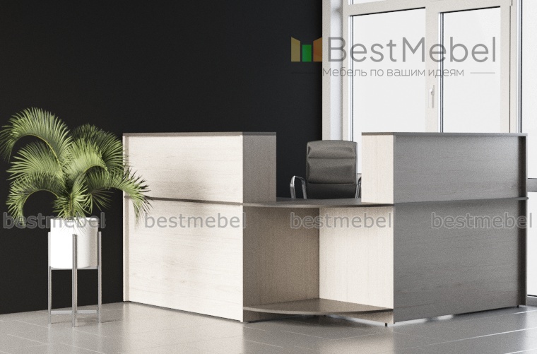 Стойка администратора Р2 BMS отличается практичной угловой конструкцией, оптимальной для небольших помещений. Модель выполнена в контрастных тонах под массив дерева, подчеркивающих лаконичность дизайна. Центральная часть оригинально оформлена в виде закругленной столешницы и открытой полки. Современная стойка позволит оборудовать не только стильное, но и комфортное рабочее место. Купить стойку администратора Р2 BMS, подобрав необходимые параметры, вы сможете по доступной цене в нашем интернет-магазине.