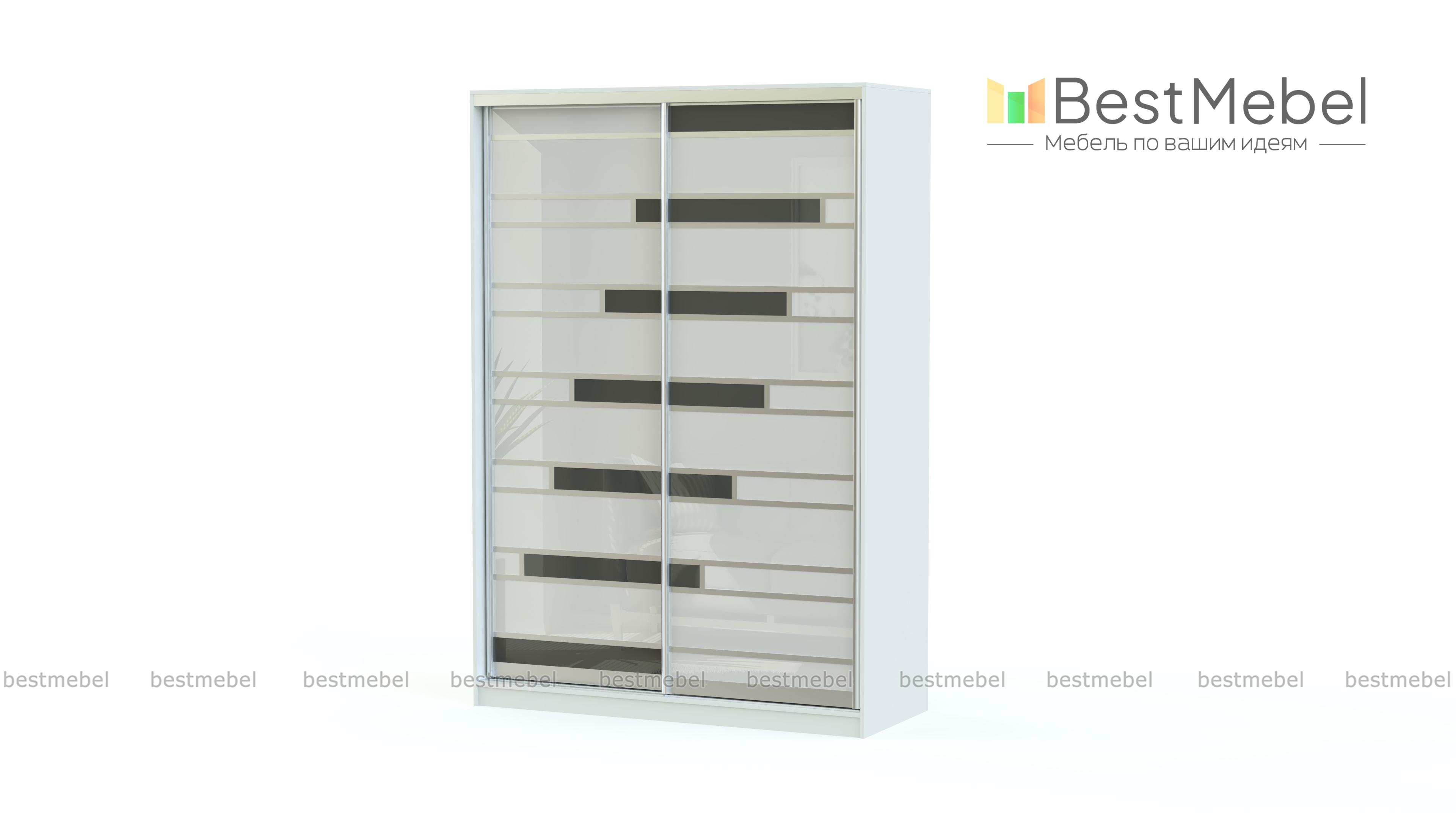 Оригинальный вместительный шкаф-купе Лента BMS с двумя широкими раздвижными дверями поможет не только компактно разместить вещи, но и преобразит интерьер помещения. Каждая дверь оформлена цветным стеклом в комбинации с алюминиевым профилем. Гармоничное сочетание черных и красных полос прочного закаленного стекла создает эффектный внешний вид шкафа. Внутреннее наполнение в традиционном исполнении предусматривает наличие вместительных полок и хромированной штанги для хранения вещей на вешалках.
