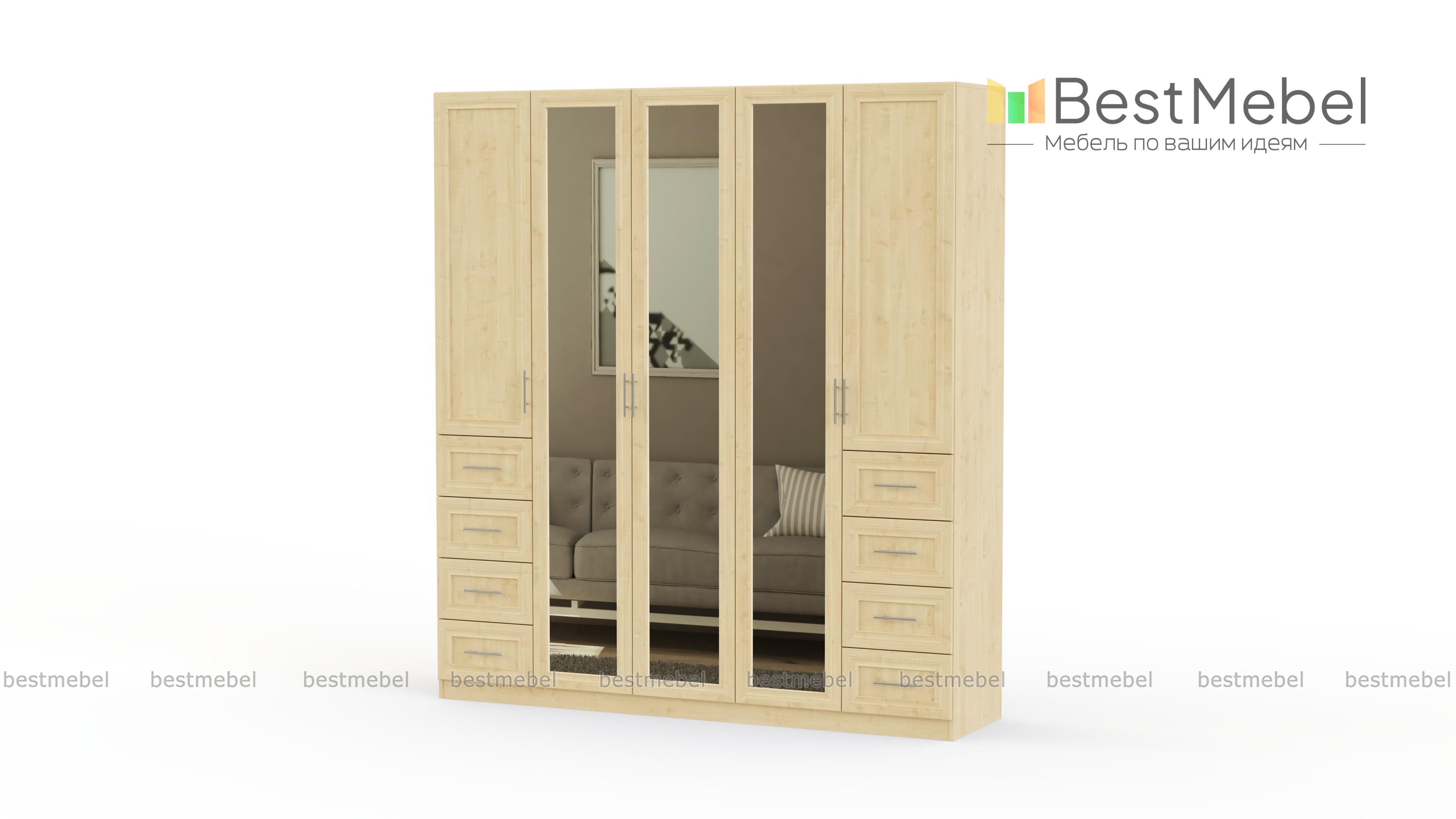 Распашной шкаф Крона 19 BMS станет незаменимым в интерьере просторной спальни или гардеробной благодаря редкой вместительности и трем зеркальным дверцам в центральной части. Крупногабаритная конструкция отличается надежностью и визуальной легкостью благодаря светлым рамочным фасадам древесных тонов. Внутреннее наполнение из двух платяных отделений, двух бельевых секций и выдвижных ящиков позволит бережно разместить предметы гардероба. Купить распашной шкаф Крона 19 BMS, подобрав необходимые параметры, вы сможете в нашем интернет-магазине.