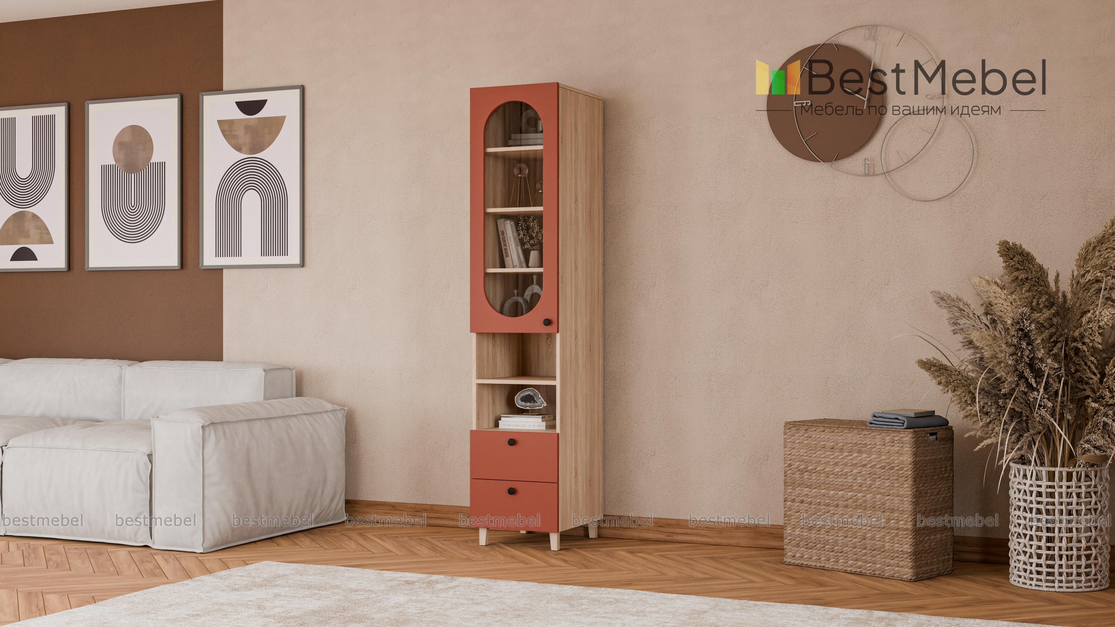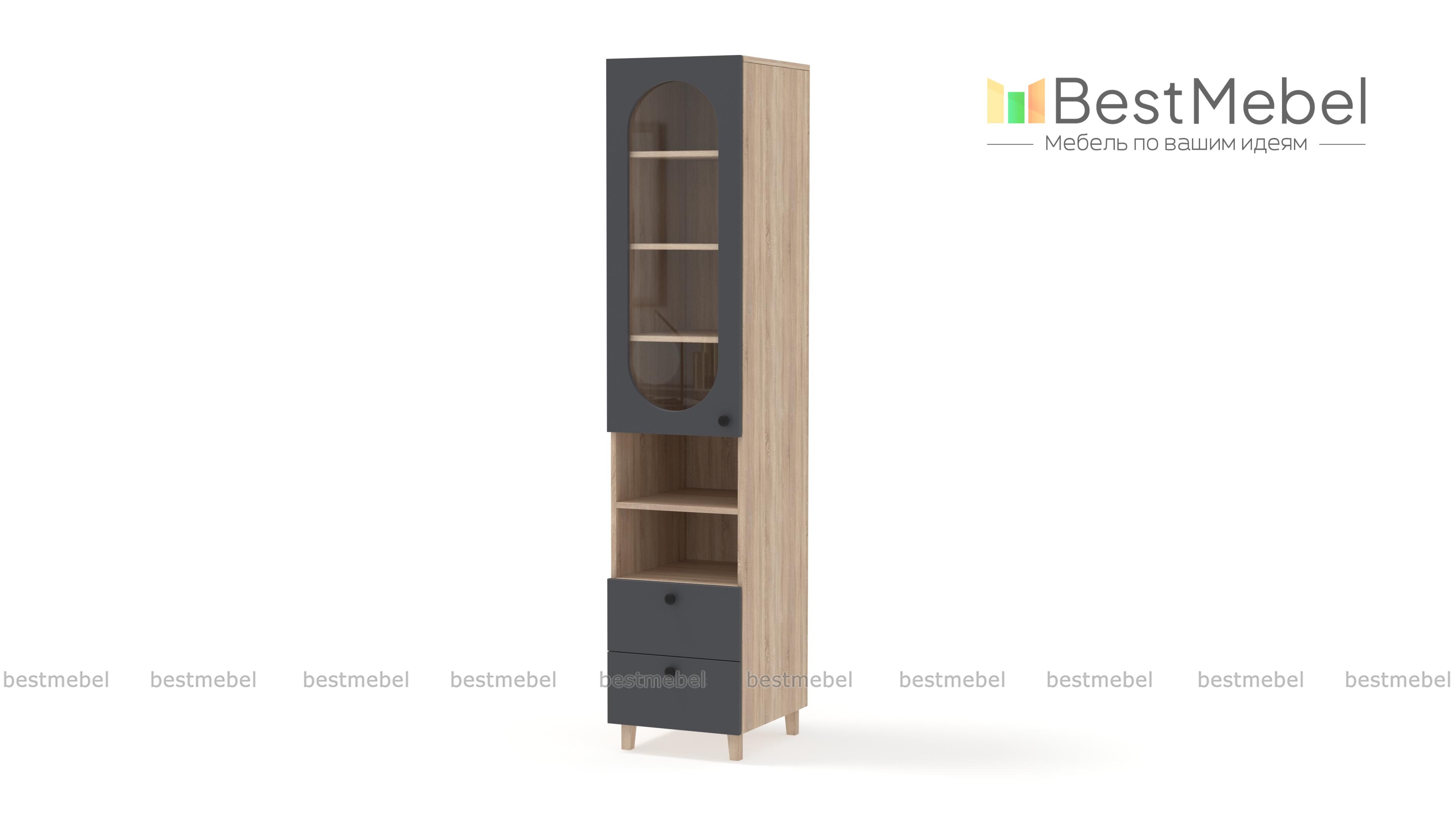 Шкаф-пенал Рене 3 BMS с витриной будет востребован в гостиной, детской комнате или столовой. Остекленное отделение, две открытые секции и два ящика позволят разместить на виду необходимые вещи и предметы декора, навести порядок в мелочах. Конструкция с высокими ножками визуально легкая, универсальный светлый фасад украшает овальный вырез. Купить шкаф-пенал Рене 3 BMS приглашаем в наш интернет-магазин с выбором размеров, фурнитуры и цвета по каталогу.