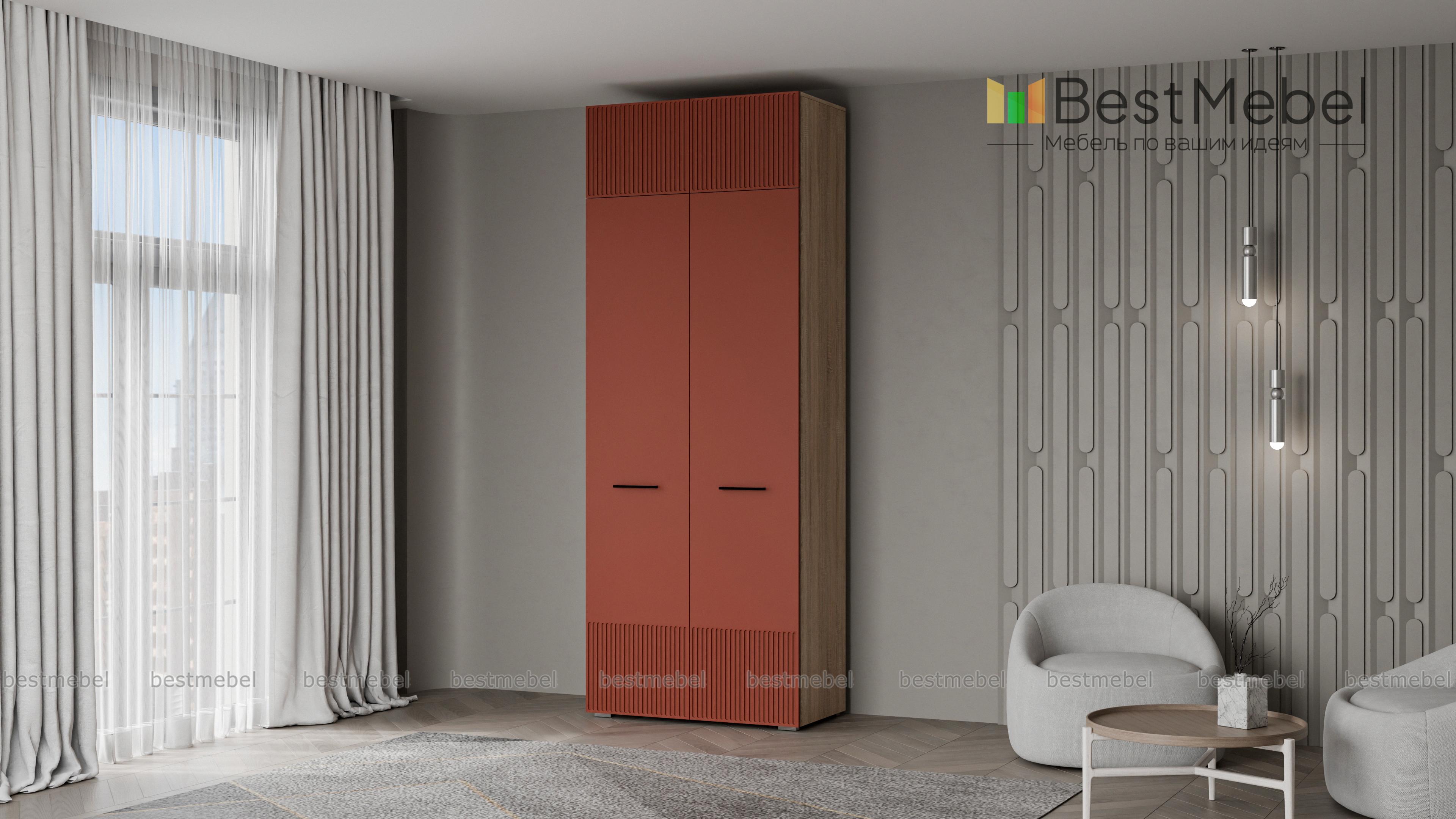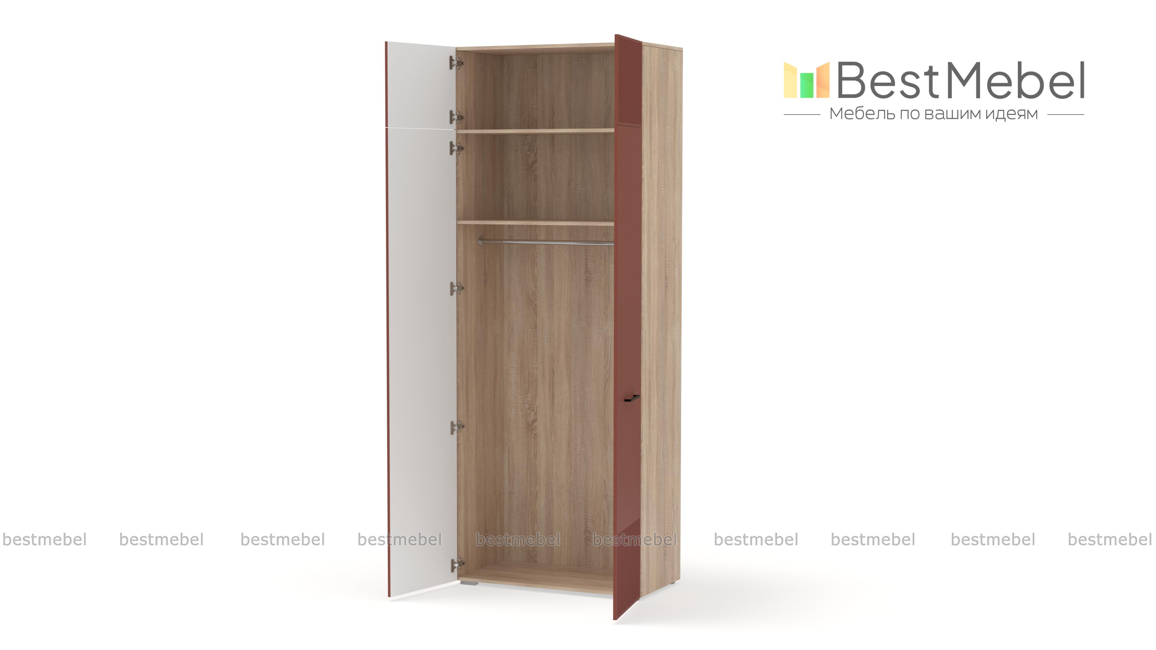 Шкаф распашной Декарт 8 BMS поможет быстро навести порядок в небольшой комнате. Двухдверный гардероб имеет базовое наполнение из штанги и верхней полки, а дополнительное пространство для хранения дает антресоль. Всегда актуально выглядит светлый фасад из МДФ с классической фрезерованной отделкой и контрастными поперечными скобами. Купить шкаф распашной Декарт 8 BMS в нужном размере и цветовой гамме приглашаем недорого на сайт нашего интернет-магазина.