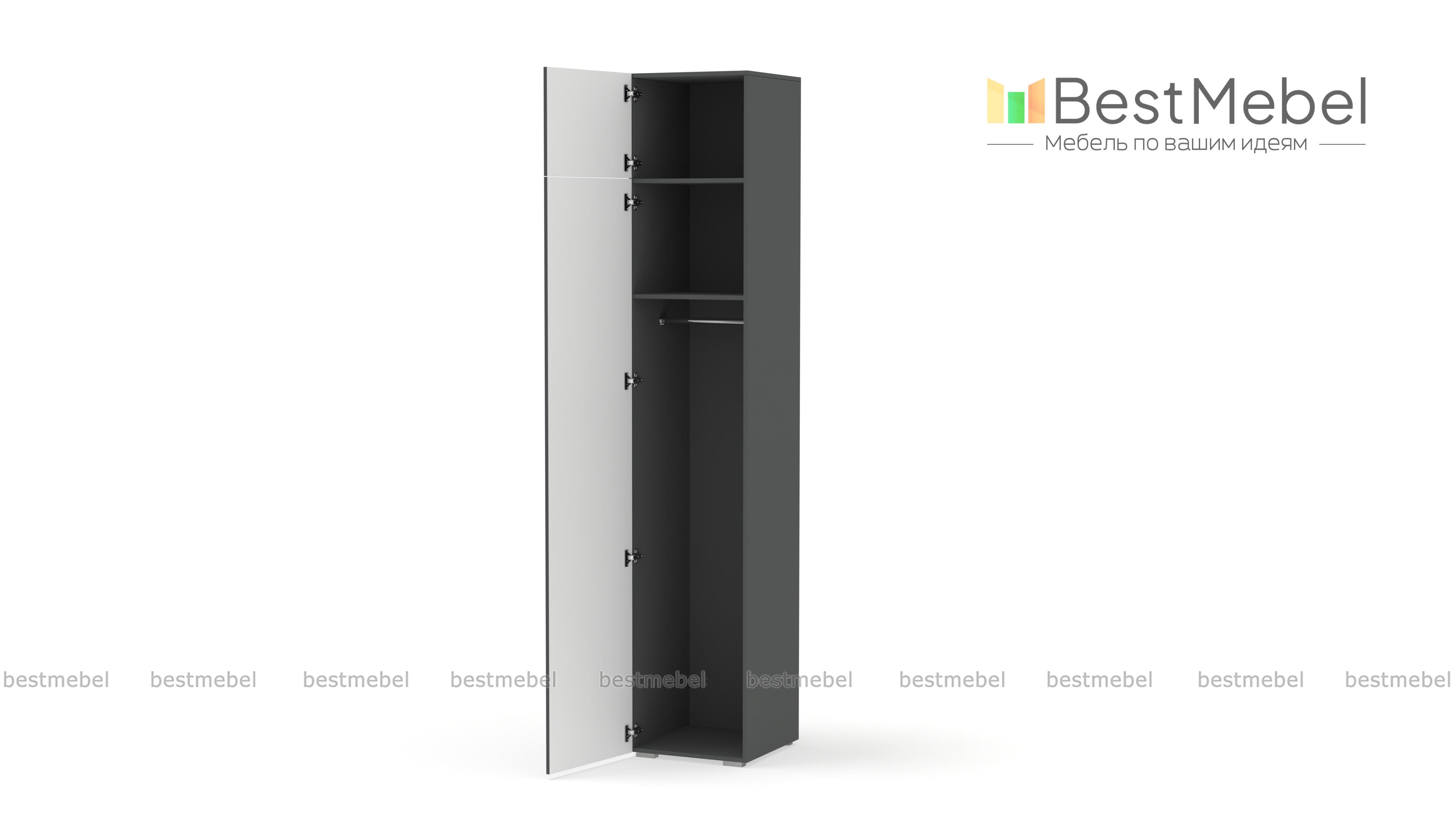 Шкаф распашной Джосс 7 BMS оснащен антресолью, чтобы максимально задействовать пространство. При компактных габаритах комплектация пенала включает в себя штангу, полку и верхнюю полку с дверцей. Актуальные оттенки и вертикальная фрезеровка на фасаде создают стильный и достаточно универсальный современный дизайн. Купить шкаф распашной Джосс 7 BMS, который будет иметь необходимые размеры и цветовую гамму, вы всегда сможете в нашем интернет-магазине.