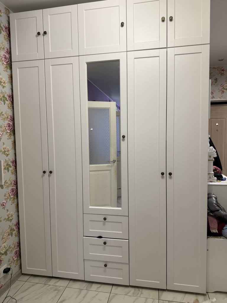 Я очень довольна шкафом, сохранила все стандартные характеристики, кроме размеров, выбрала из предложенных. Долго искала шкаф с внутренним наполнением именно с ящиками, двухуровневыми перекладинами, это большая редкость даже в best mebel, это единственный вариант и мне он подошёл идеально! Спасибо!Сделали очень быстро, это огромное преимущество, был небольшой скол, но я закрыла на это глаза.