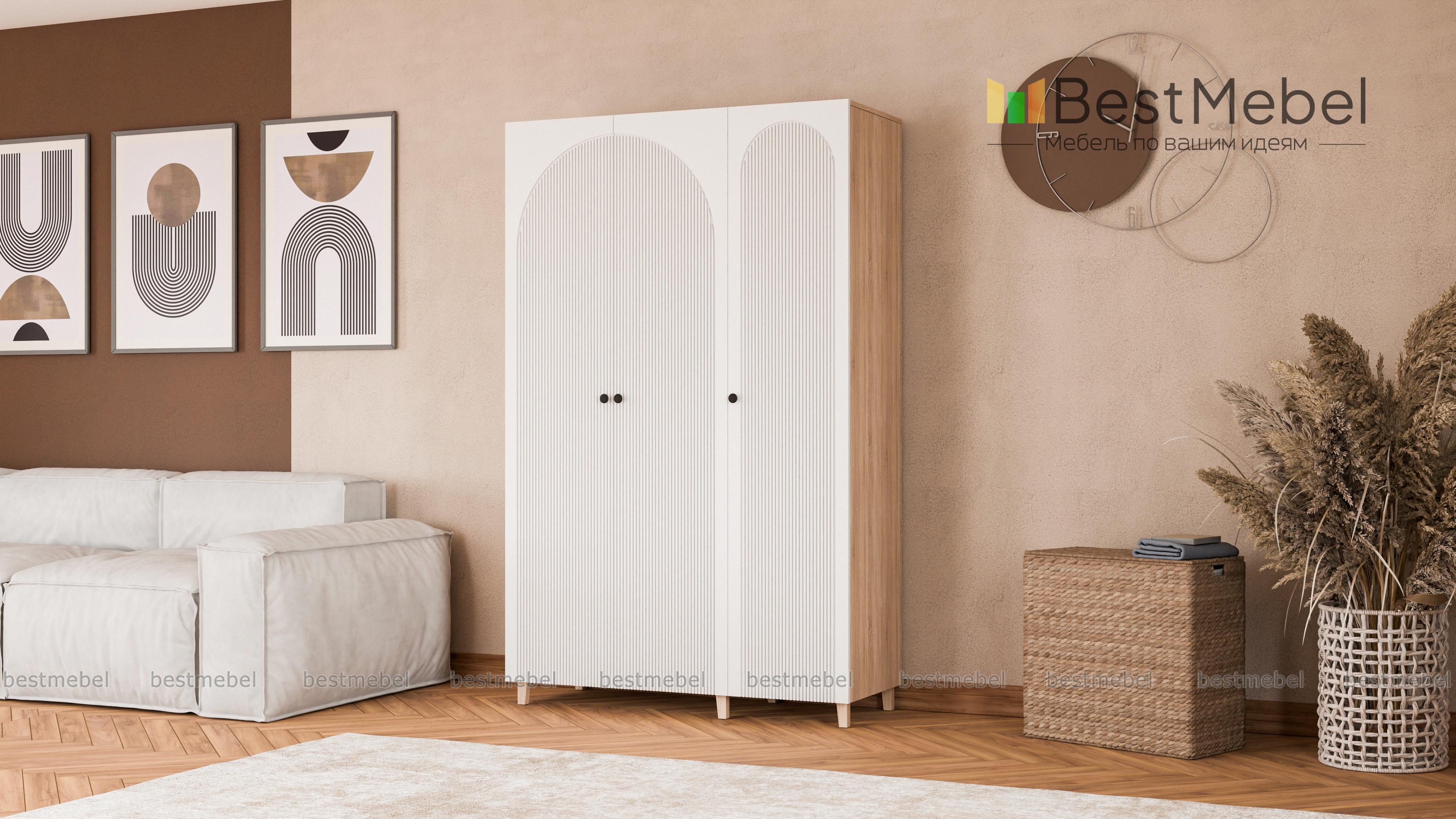 Шкаф распашной Вивьен 6 BMS с высокими ножками отличается легким силуэтом и стильным дизайном. Трехдверный гардероб с рифленым фасадом, выполненный в комфортной природной гамме, прекрасно вписывается в интерьеры детских, спален и прихожих. Продуманная организация внутреннего пространства шкафа позволяет разместить в порядке одежду и обувь. Купить шкаф распашной Вивьен 6 BMS с выбором размеров, цвета и наполнения можно на сайте нашего интернет-магазина.