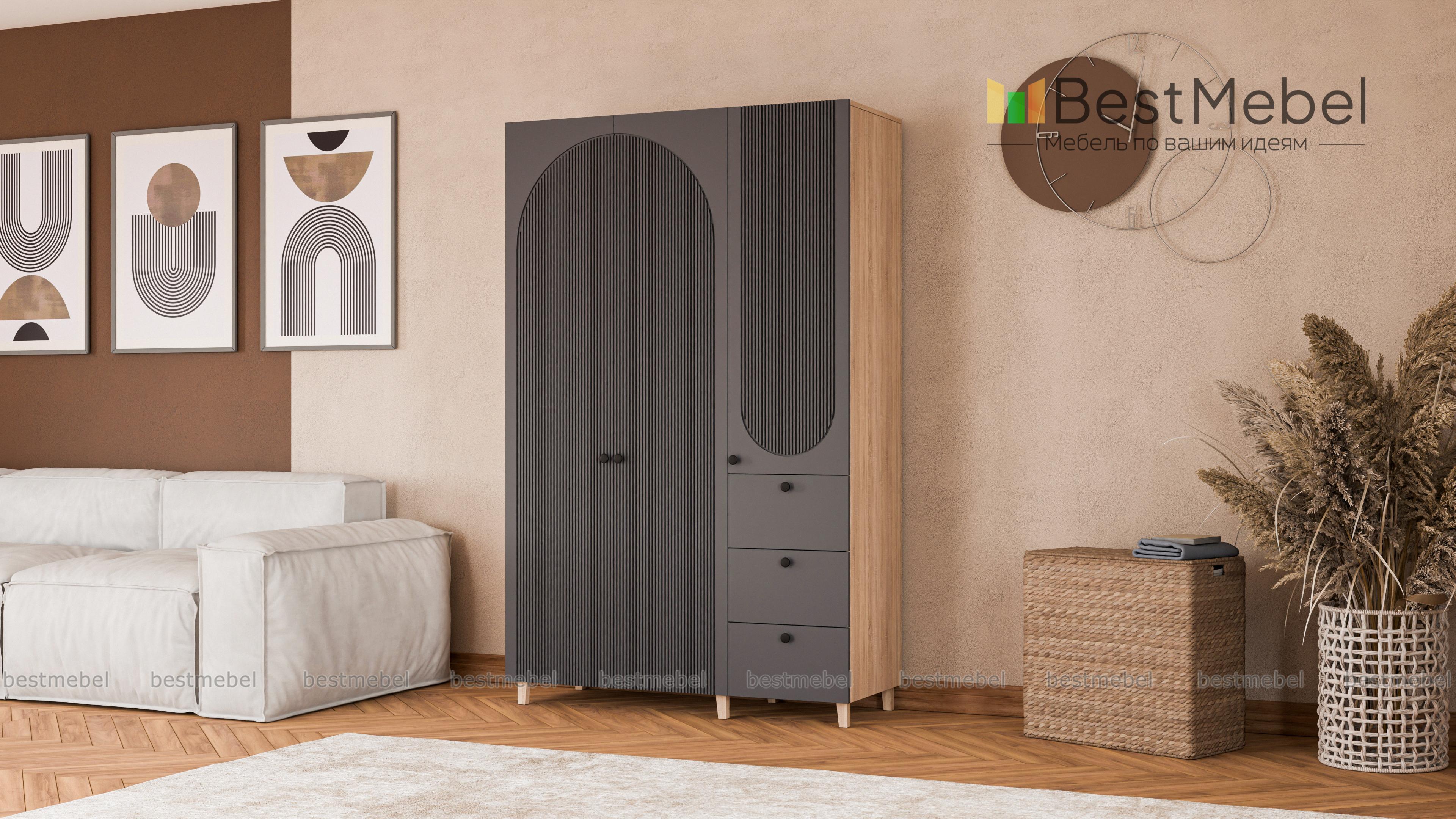 Шкаф распашной Вивьен 7 BMS можно использовать для хранения одежды и обуви, домашнего текстиля и всевозможных бытовых мелочей. Правильно подобранная комбинация включает в себя платяное и бельевое отделения, а также три выдвижных ящика. Глухой шкаф выглядит легким со светлым рельефным фасадом и высокими ножками в духе сканди. Купить шкаф распашной Вивьен 7 BMS вы сможете недорого в нашем интернет-магазине, самостоятельно подобрав размеры и оттенки по каталогу.