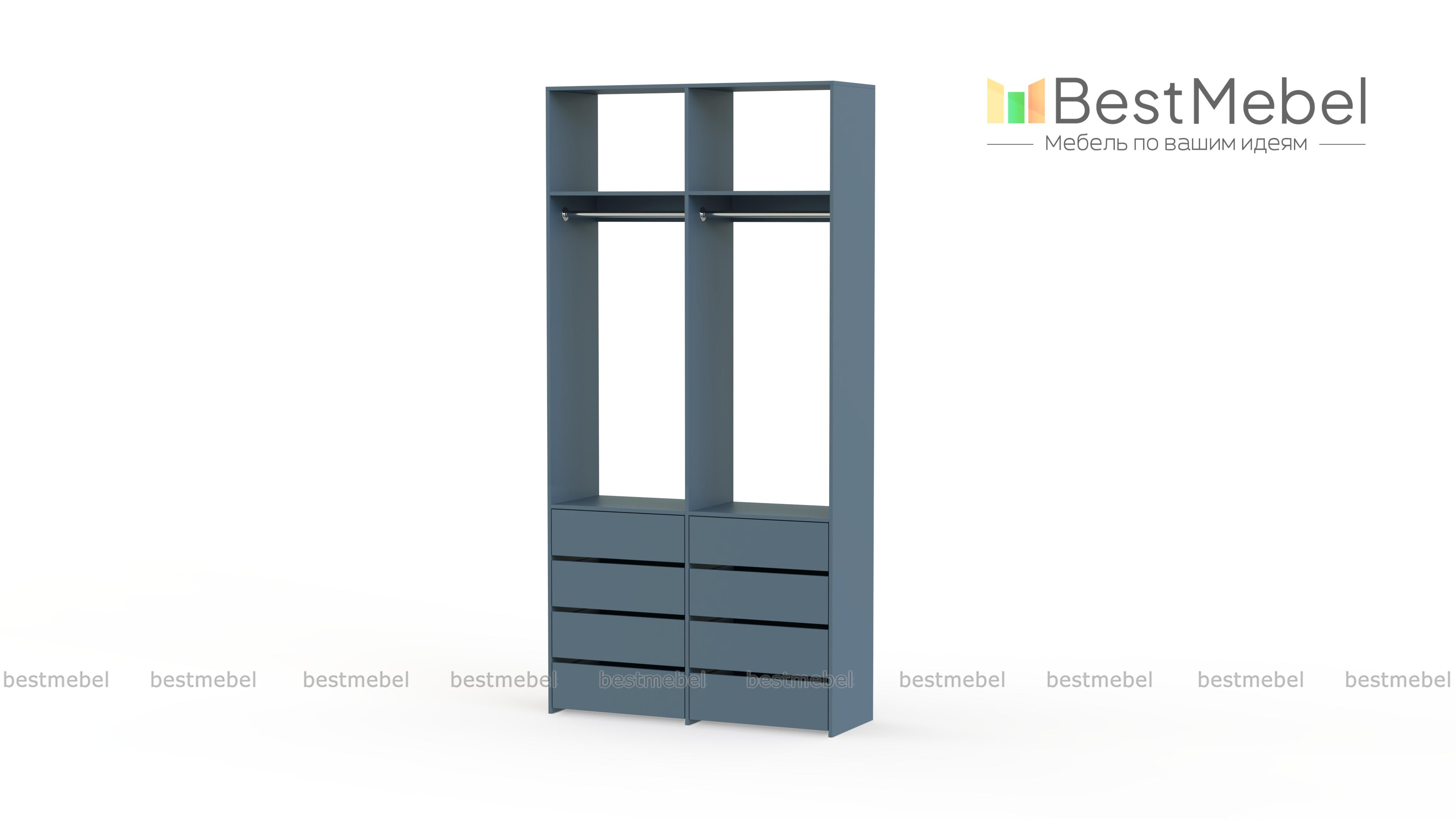 Стеллаж для одежды Мирта 44 BMS — это готовое решение в вашу гардеробную или прихожую. Продуманной системой хранения с двумя штангами, верхними полками и двумя рядами бельевых ящиков удобно пользоваться, не тратя время на поиски нужных вещей. Ламинированное покрытие эстетично выглядит, отличается прочностью и долговечностью. Купить стеллаж для одежды Мирта 44 BMS вы сможете на сайте нашего интернет-магазина с изготовлением по индивидуальным размерам.