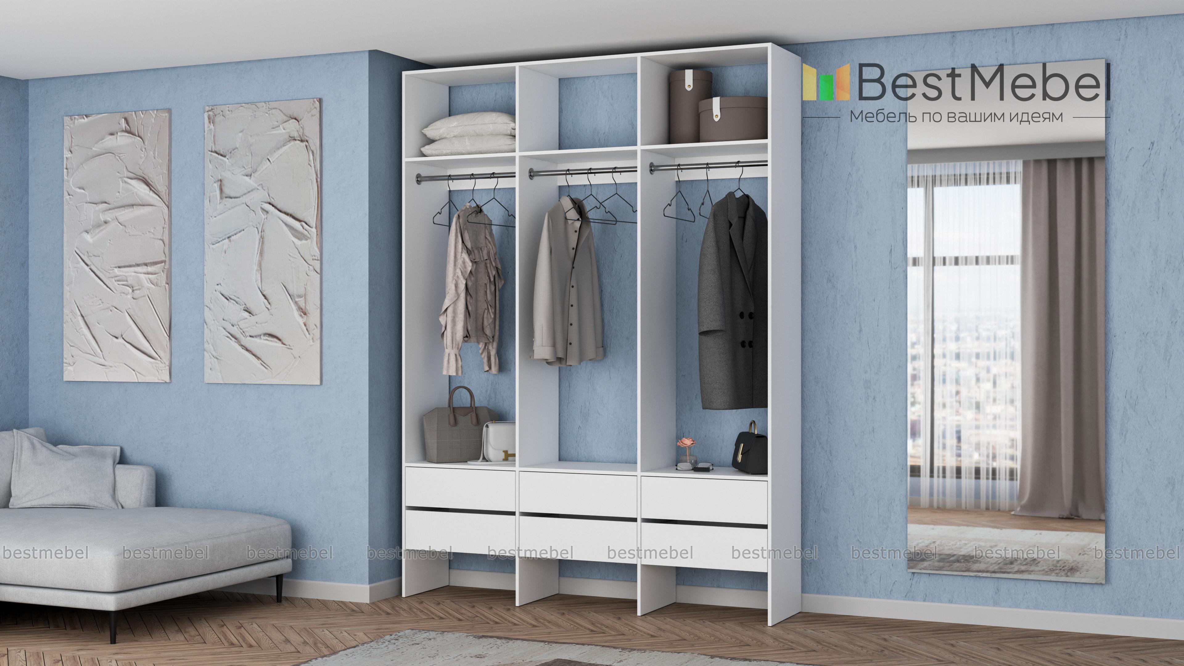 Стеллаж для одежды Мирта 55 BMS надежен и практически универсален. Открытая легкая конструкция не загромождает пространство, прекрасно вписывается в небольшие гардеробные и прихожие. Для максимально комфортного хранения стеллаж укомплектован тремя перекладинами для вешалок с одеждой, рядом просторных верхних полок и шестью выдвижными ящиками, оставляющими место для обуви снизу. Купить стеллаж для одежды Мирта 55 BMS приглашаем в наш интернет-магазин с возможностью выбора цвета и размеров.