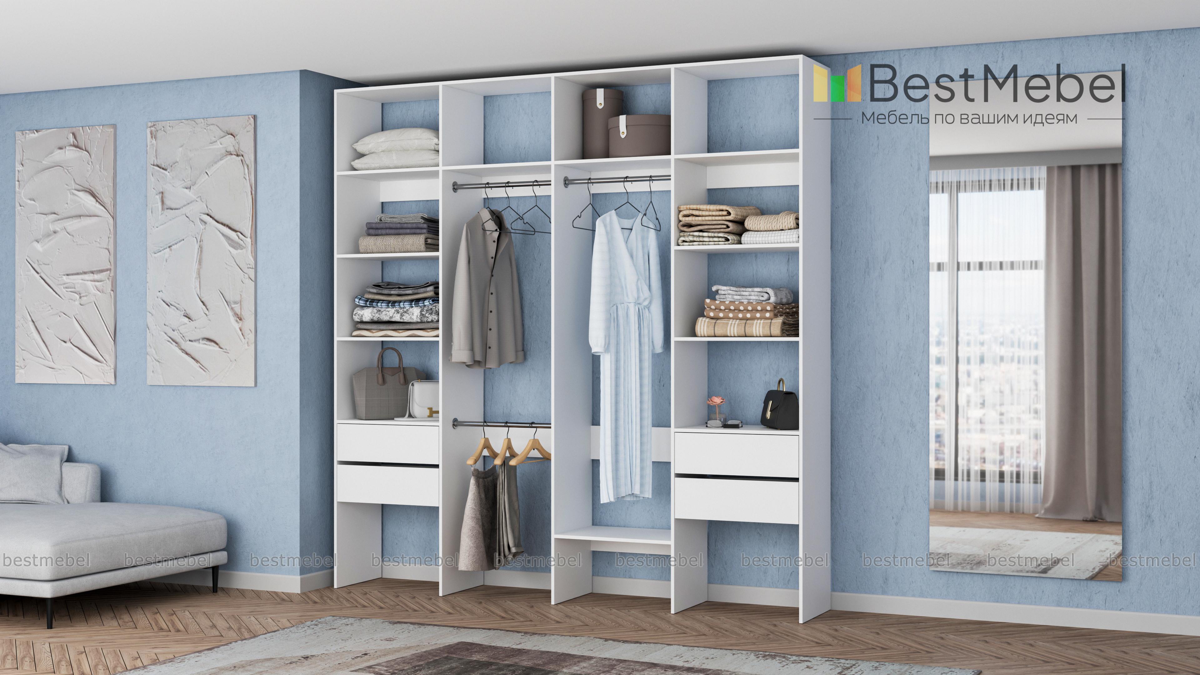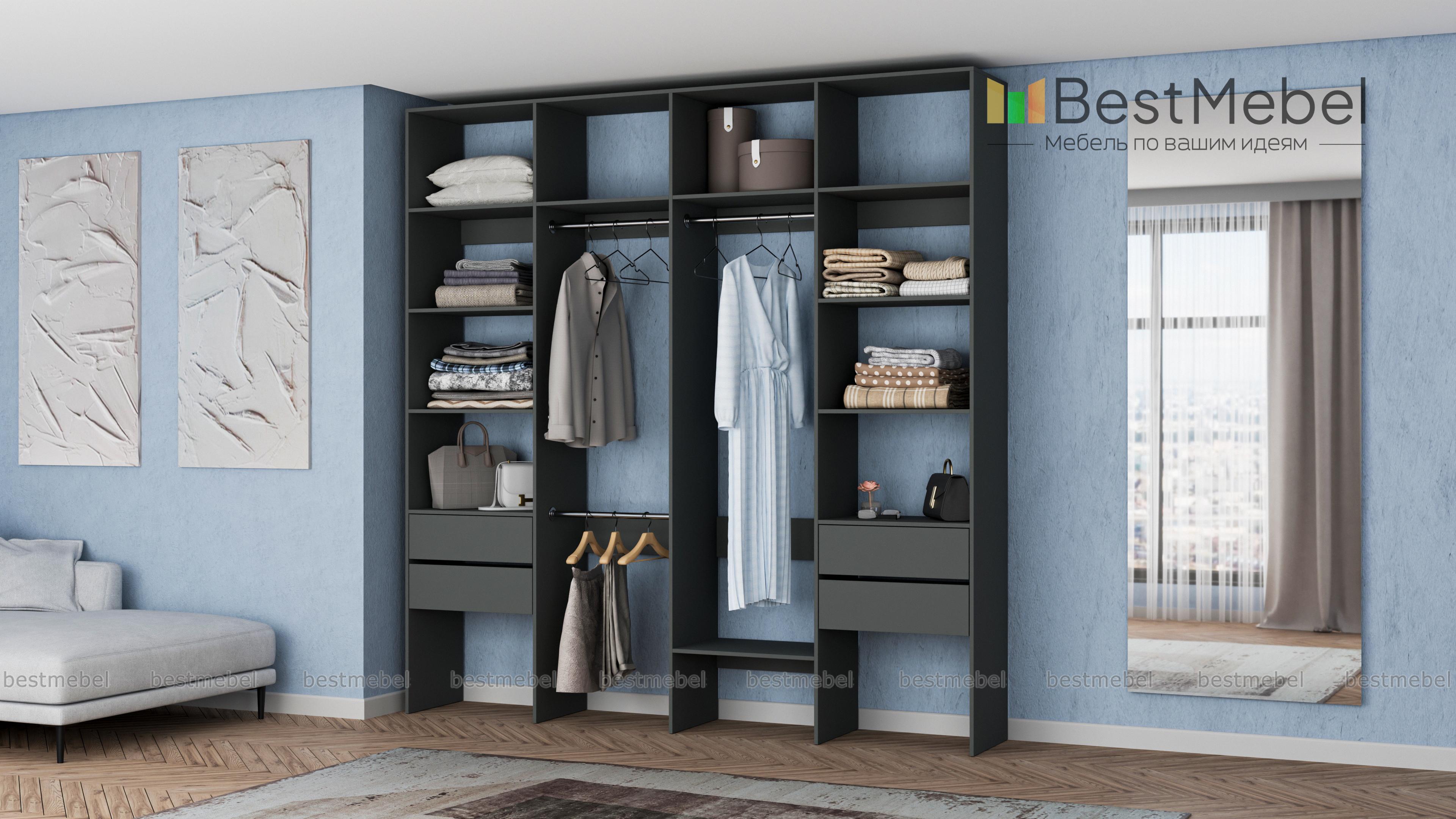 Стеллаж для одежды Мирта 66 BMS поможет вам разгрузить пространство квартиры от громоздких шкафов. Комплектация включает в себя разноуровневые штанги для одежды, вместительные полки и четыре выдвижных ящика, позволяющих хранить в порядке мелкие вещи. Благодаря использованию ламинированной плиты стеллаж доступен по цене, отличается прочностью и имеет широкую цветовую палитру. Купить стеллаж для одежды Мирта 66 BMS с изготовлением по индивидуальным размерам приглашаем в наш интернет-магазин.
