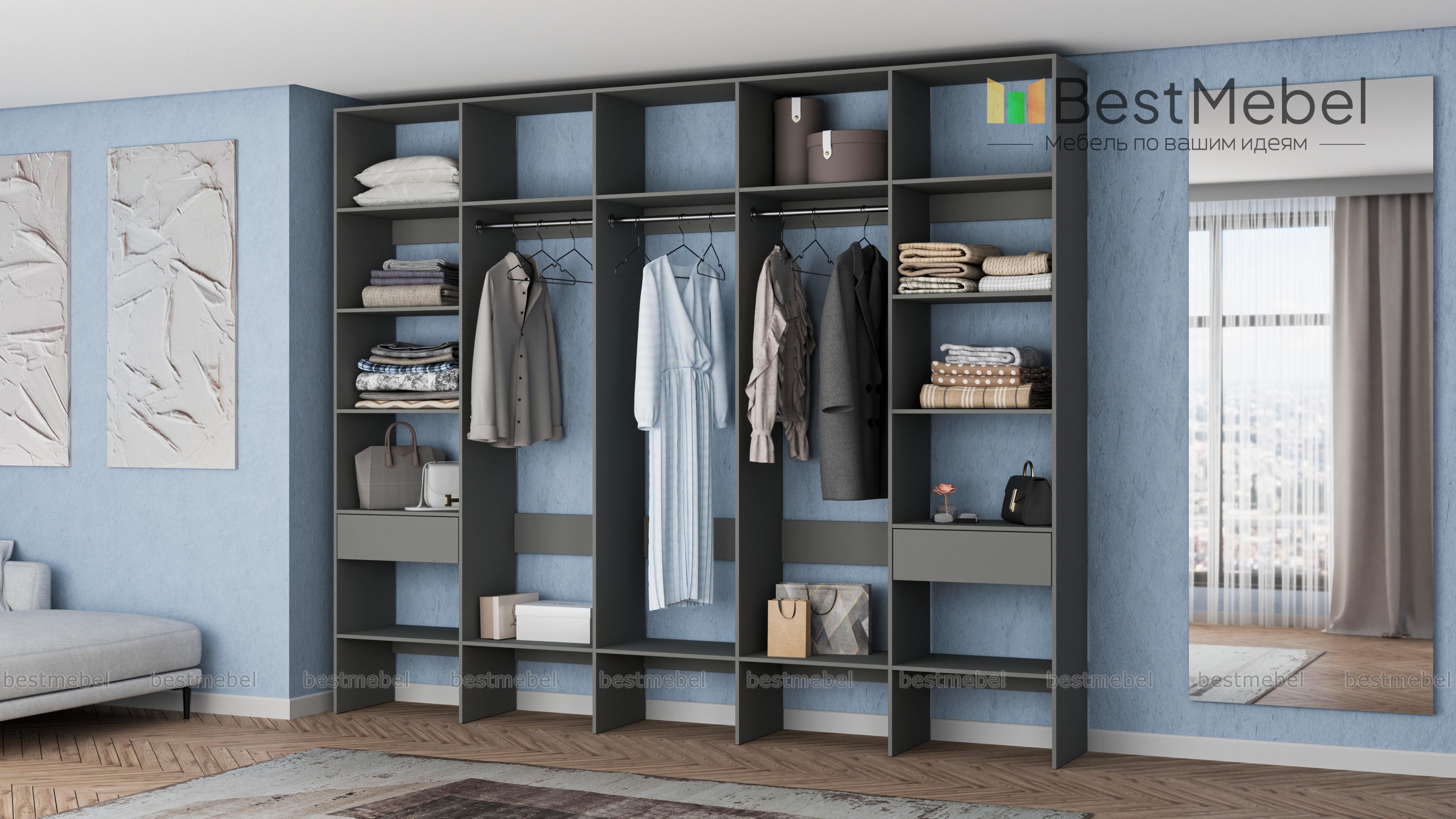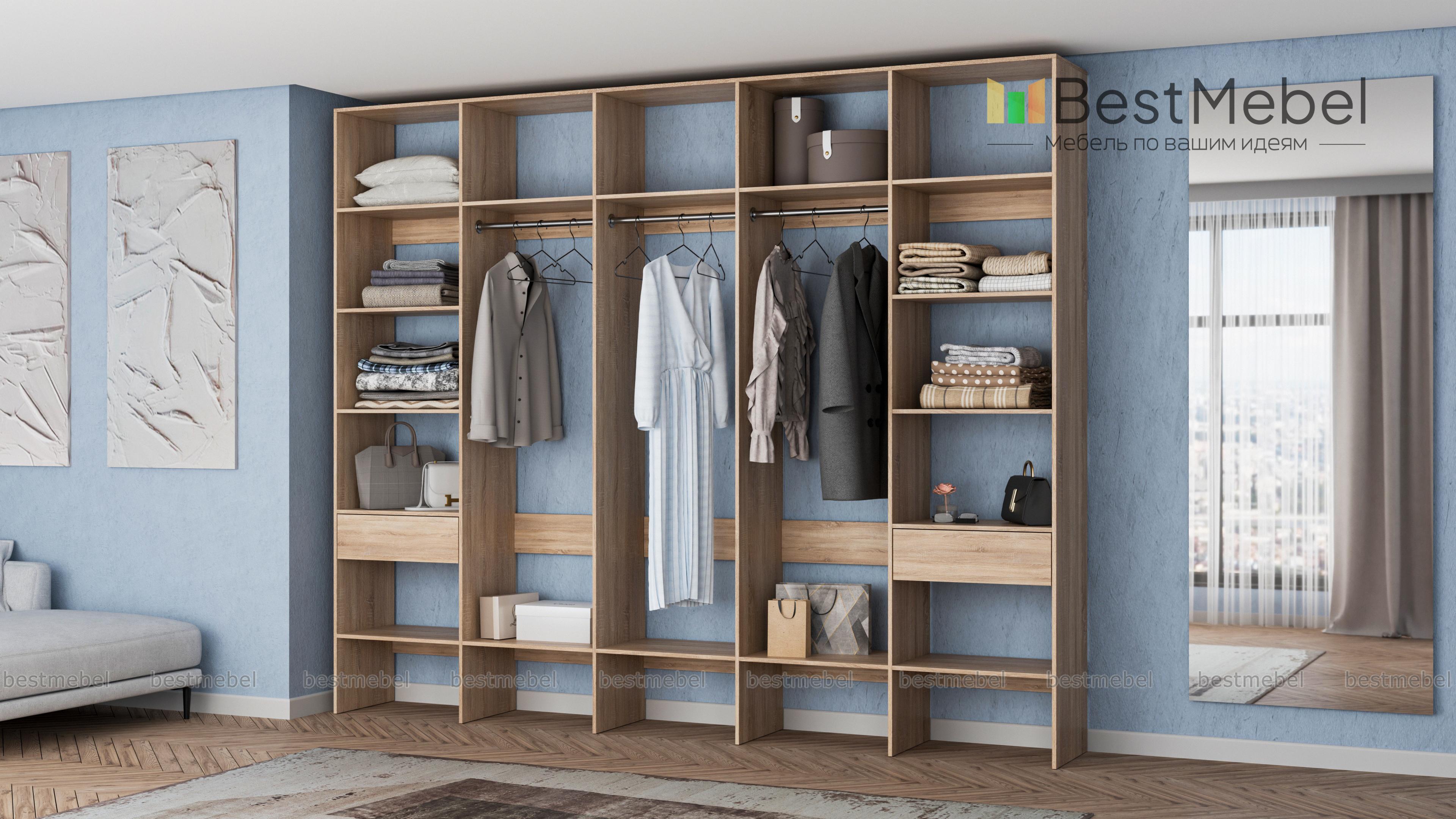 Стеллаж для одежды Мирта 69 BMS — это полноценная система хранения для просторной гардеробной. Три штанги в центре, полки по периметру и два выдвижных отделения обеспечивают быстрый доступ ко всем вещам: от сезонной одежды до мелких аксессуаров и средств ухода. Благодаря универсальному дизайну стеллаж гармонично вписывается в разные по стилю интерьеры. Купить стеллаж для одежды Мирта 69 BMS с индивидуальным подбором цвета и размеров вы сможете на сайте нашего интернет-магазина.