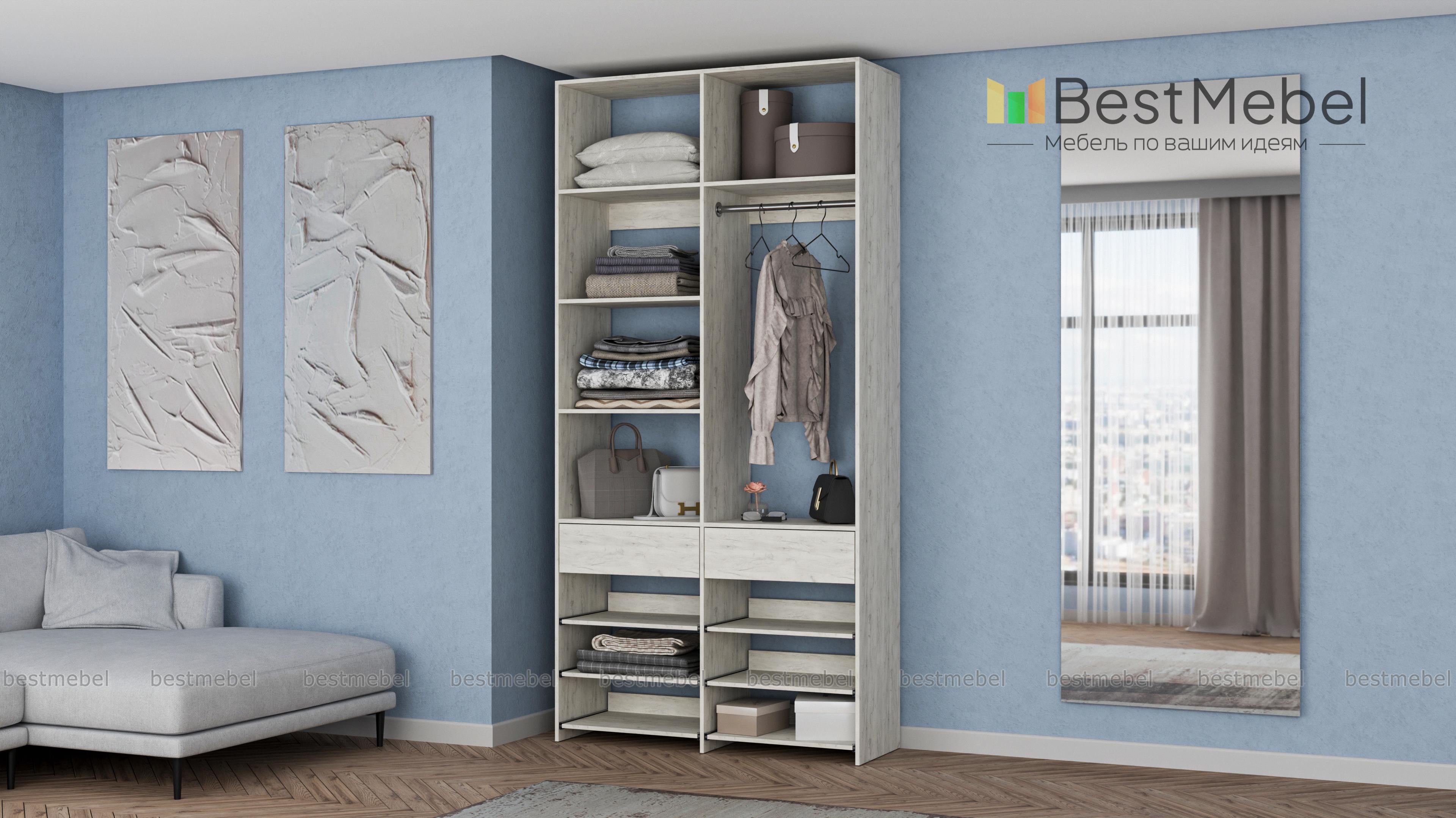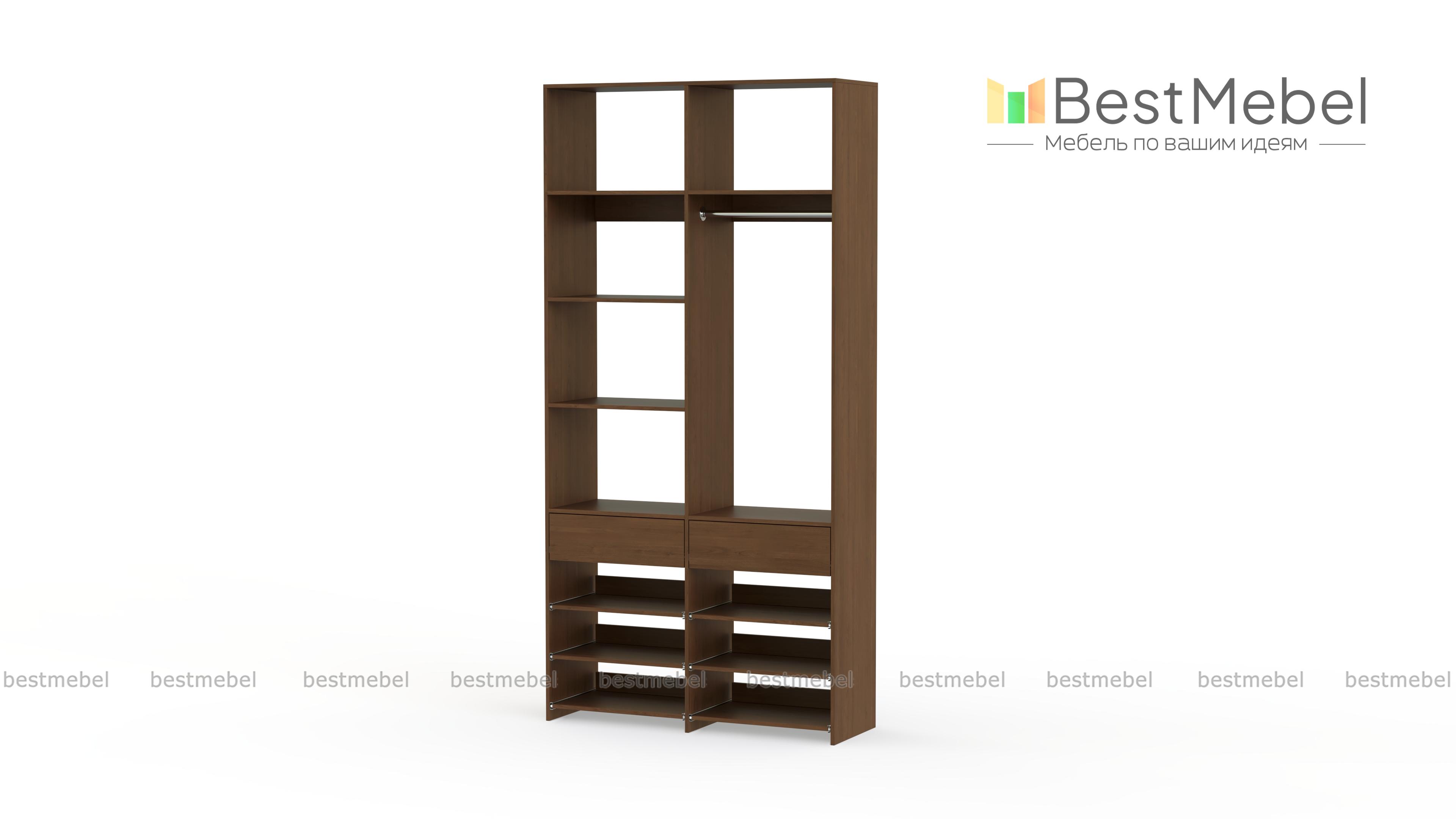 Стеллаж для одежды Мирта 82 BMS эффективно использует ограниченную площадь маленькой прихожей или гардеробной комнаты. В конфигурации со штангой, двумя ящиками, выдвижными и стационарными полками есть место для одежды, обуви и мелких аксессуаров. Ламинированное покрытие стеллажа устойчиво к влаге и появлению царапин, легко моется и эстетично выглядит. Купить стеллаж для одежды Мирта 82 BMS в оттенках нашего каталога и любом удобном размере вы сможете на сайте интернет-магазина.