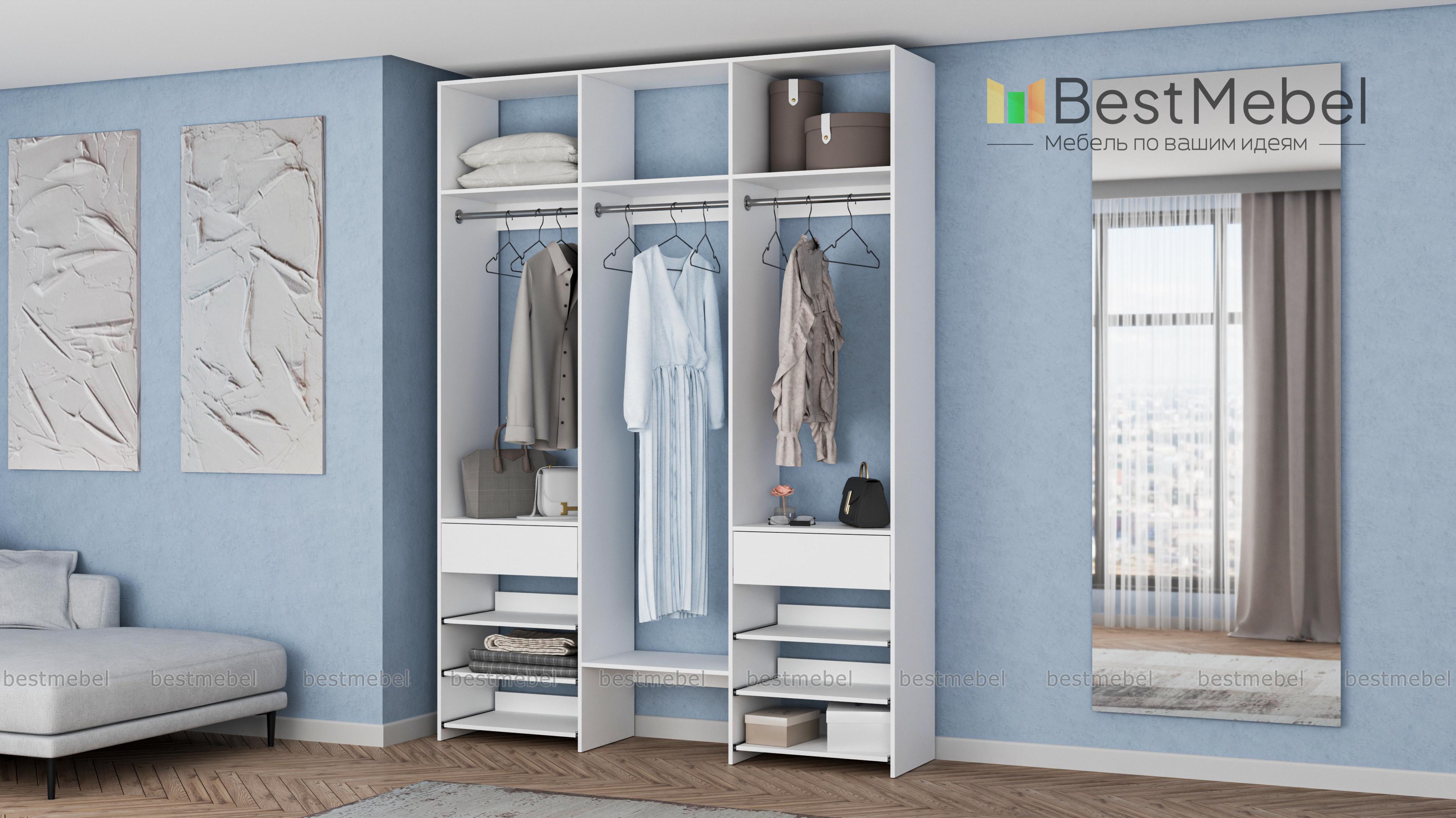 Стеллаж для одежды Мирта 91 BMS позволяет разместить вещи на виду и в легком доступе. Для хранения короткой и длинной одежды на вешалках, сложенных вещей, мелкого трикотажа и обуви идеально подходит комбинация из трех штанг, верхних полок, выдвижных панелей и пары ящиков. Стеллаж из ламинированной ДСП с древесным рисунком прочный и эстетичный, при этом доступный по цене. Купить стеллаж для одежды Мирта 91 BMS в любом оттенке из каталога и нужном размере приглашаем к нам в интернет-магазин.