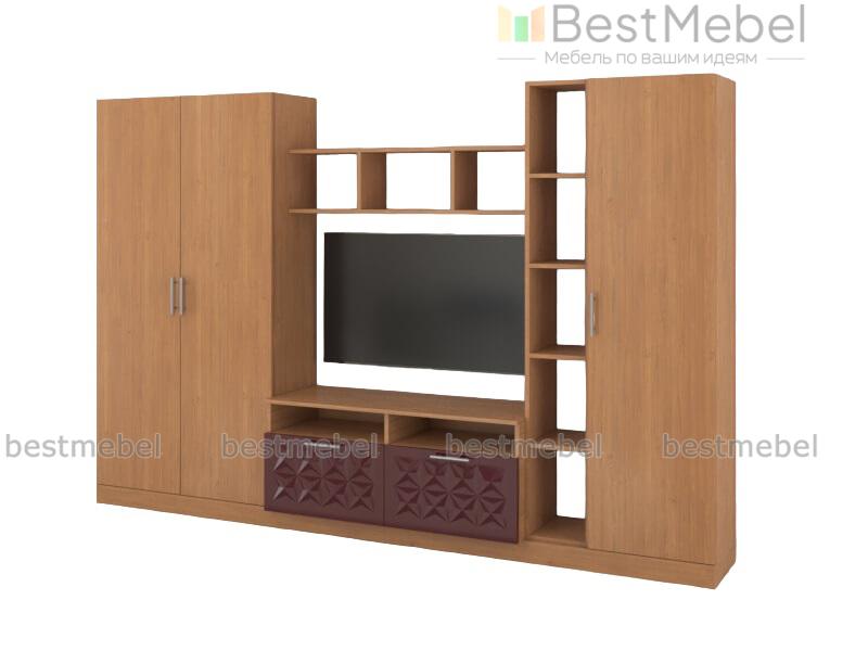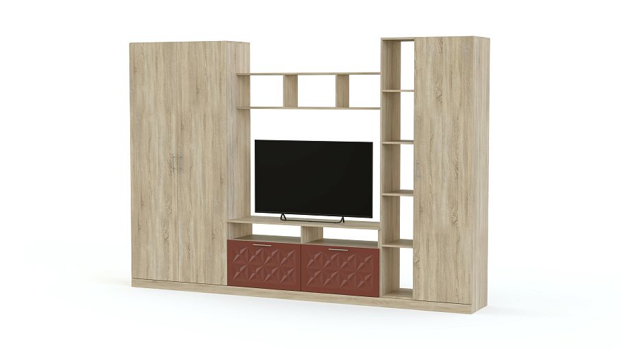 Стенка Вельвет 17 BMS из популярной серии объединила классические традиции и современную функциональность. Гармоничная композиция включает в себя низкую тумбу под ТВ, платяной двухдверный шкаф, антресоль и комбинированный шкаф с закрытой бельевой секцией и стеллажом. Отделения разного типа позволят разместить аппаратуру, книги, одежду и многочисленные бытовые мелочи. Интересным акцентом в домашнем интерьере станет сочетание оттенков под массив дерева и терракотового с рельефным рисунком. Купить стенку Вельвет 17 BMS приглашаем недорого в наш интернет-магазин.