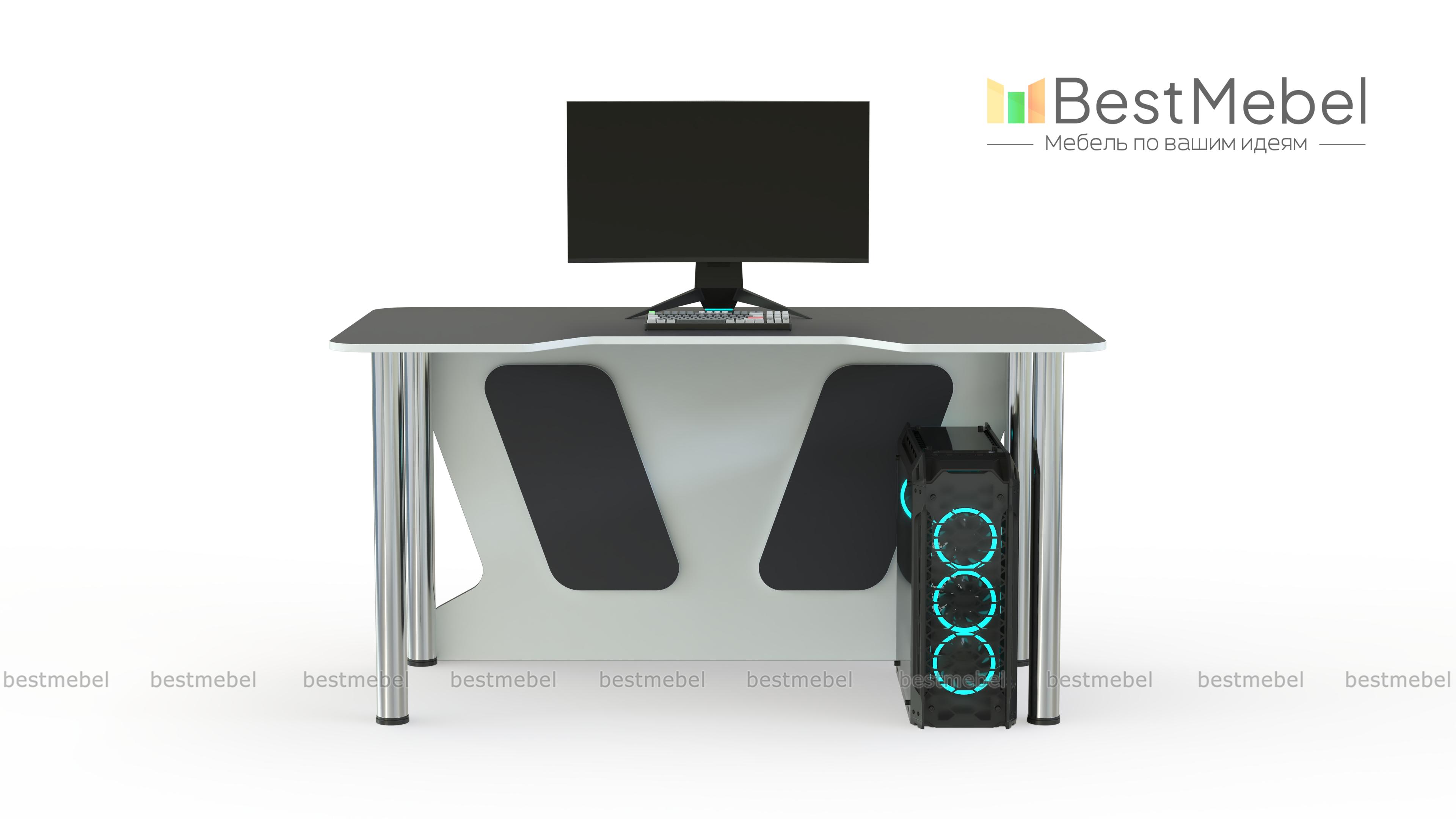 Геймерский стол Таун 13 BMS – базовый вариант для игры, учебы или работы. Легкий и устойчивый благодаря регулируемым хромированным опорам, стол оборудован просторной столешницей с безопасно скругленными углами и декоративно вырезанной задней стенкой. Трапециевидная выемка переднего края поможет занять правильное положение и снизит нагрузку на локти. Купить геймерский стол Таун 13 BMS с возможностью изготовления по индивидуальным размерам приглашаем в наш интернет-магазин.