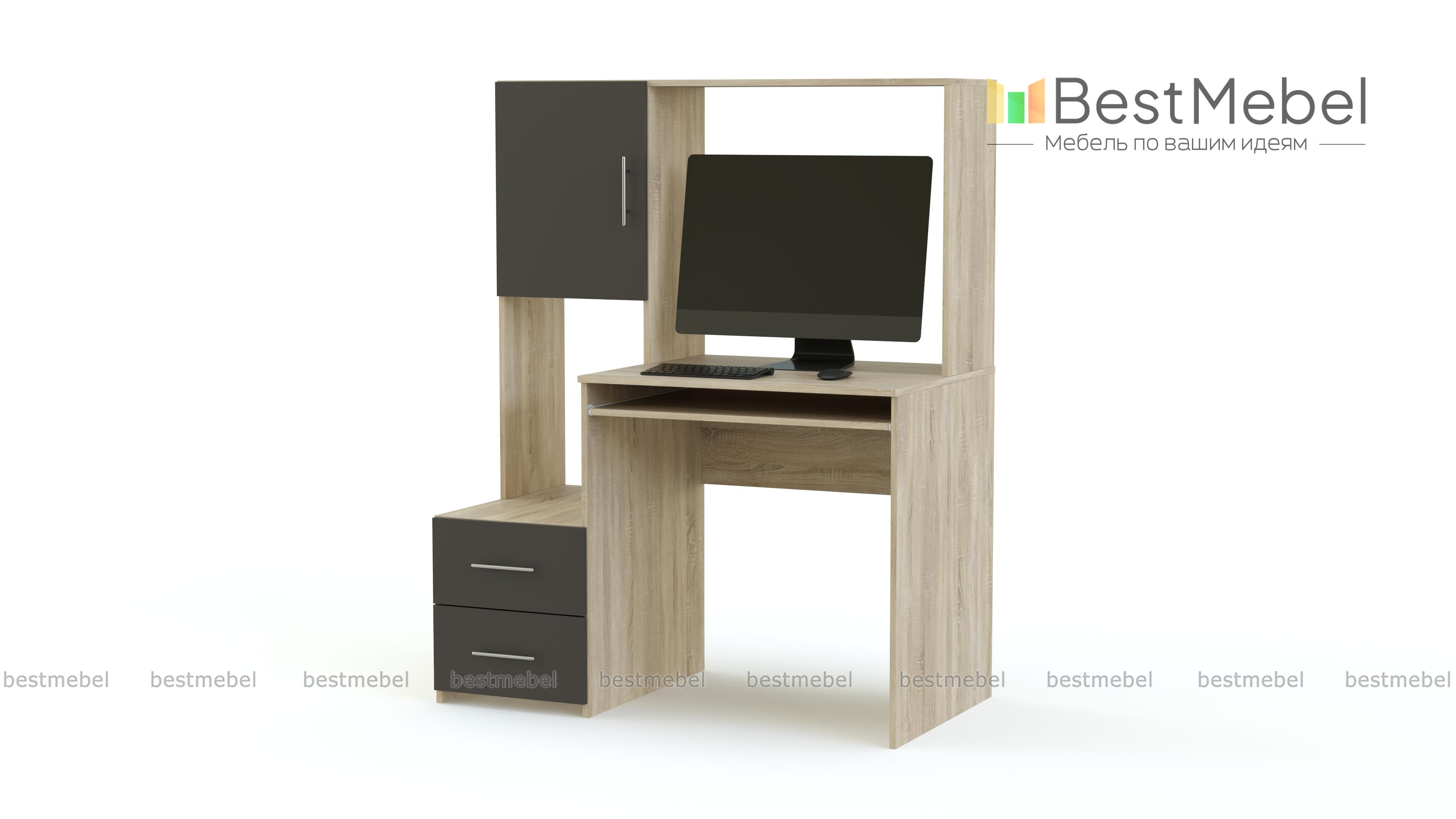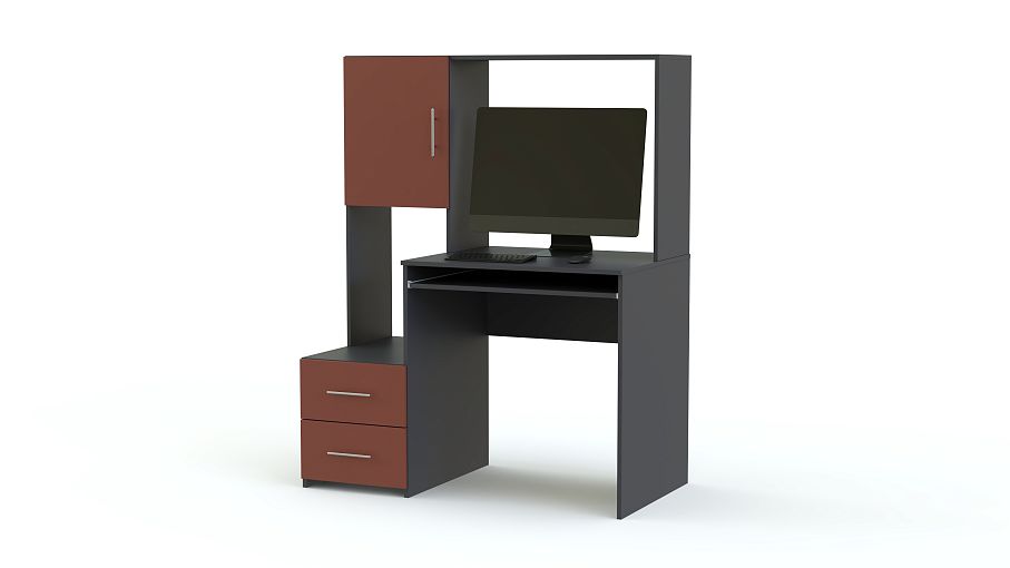 Компьютерный стол Марти глянец 5 BMS поможет оборудовать комфортное пространство для работы или учебы. Несмотря на компактные размеры, модель оборудована всем необходимым для размещения компьютера, книг, документов и канцелярских принадлежностей. Столешница дополнена выдвижной полкой для клавиатуры, а тумба с двумя ящиками – надстройкой с нишей и распашным отделением. Выполненный в темных тонах, стол эффектно смотрится с цветными матовыми вставками фасадов. Купить компьютерный стол Марти глянец 5 BMS вы сможете в нашем интернет-магазине по доступной цене.