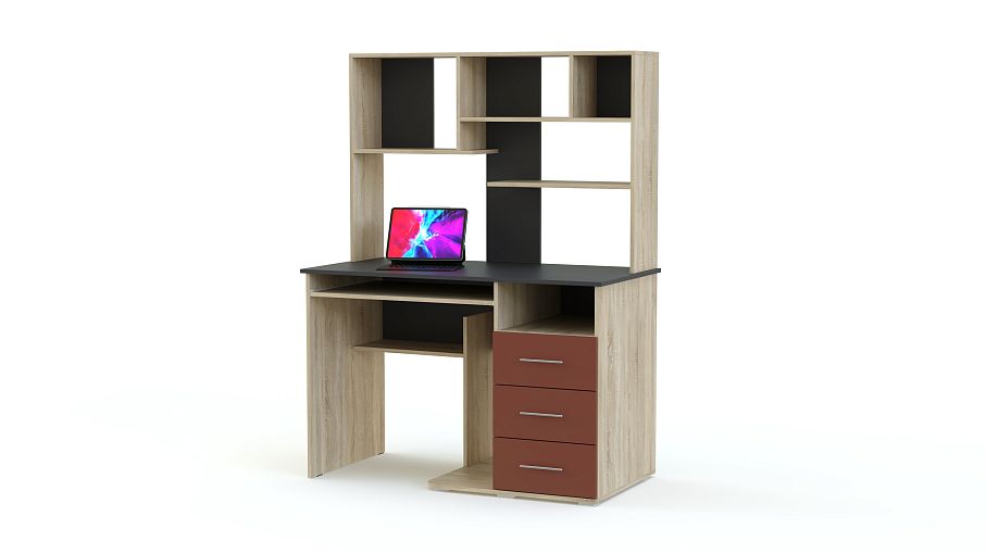 Компьютерный стол МБ 15.1 BMS станет отличным решением для современной молодежной комнаты или креативного офиса. Яркая модель отличается не только продуманной конструкцией, но и эффектным дизайном, сочетая нейтральные древесные тона и контрастные вставки. Стол оборудован выдвижной полкой для клавиатуры, нишей под системный блок, тумбой с выдвижными ящиками и вместительной надстройкой с открытыми секциями. Купить компьютерный стол МБ 15.1 BMS, подобрав необходимые параметры, приглашаем в наш интернет-магазин.