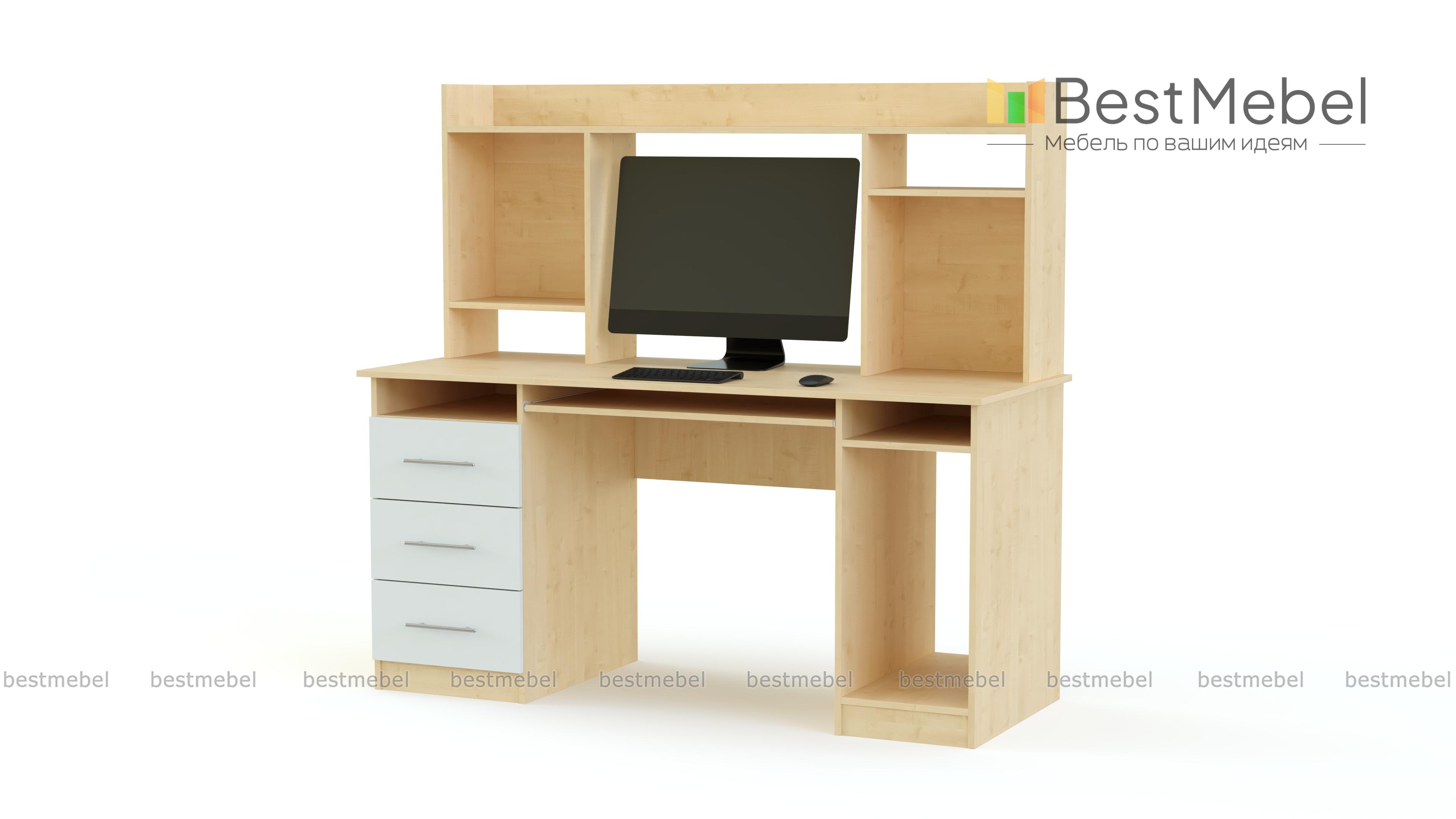 Компьютерный стол МБ 34.1 BMS отличается надежностью и устойчивостью конструкции в сочетании с ярким современным дизайном. Прямая модель оборудует удобное рабочее место и разместит в зоне быстрого доступа все необходимое. Стол оборудован широкой столешницей с выдвижной полкой для клавиатуры, тумбой с ящиками, нишей под системный блок и надстройкой с открытыми полками. Яркие фасады с ручками-рейлингами станут стильным акцентом в домашнем или офисном интерьере. Купить компьютерный стол МБ 34.1 BMS по демократичной цене приглашаем в наш интернет-магазин.