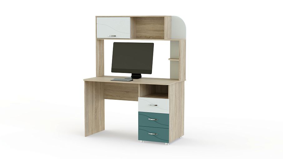 Письменный стол Розали BMS эффектно дополнит рабочее место. Если в вашем кабинете или в комнате подростка мало места, то стоит отдать предпочтение этому столу. Он оборудован не только удобной, оптимальной высоты столешницей, но и функциональной надстройкой. Она сможет заменить комод или тумбу, что значительно экономит пространство. Под столешницей тоже имеется тумба с вместительными выдвижными ящиками. Изделие оформлено в приятную цветовую гамму и дополняется цветными вставками. Купить письменный стол Розали BMS на сайте интернет-магазина можно по низкой цене.