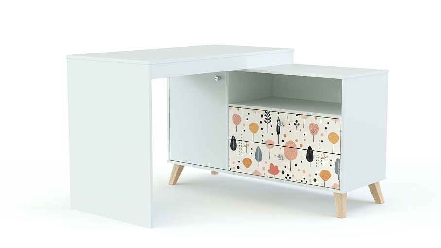 Стол письменный Эльза 1 BMS имеет угловую форму, позволяя задействовать неиспользуемое ранее пространство. Просторная прямоугольная столешница опирается на широкую тумбу, оборудованную распашным отделением, двумя выдвижными ящиками и нишей для хранения тетрадей, папок и учебников. Легкость конструкции обеспечивают высокие ножки и светлая цветовая гамма с нежной акцентной фотопечатью. Купить стол письменный Эльза 1 BMS в оттенках нашего каталога вы сможете на сайте интернет-магазина.