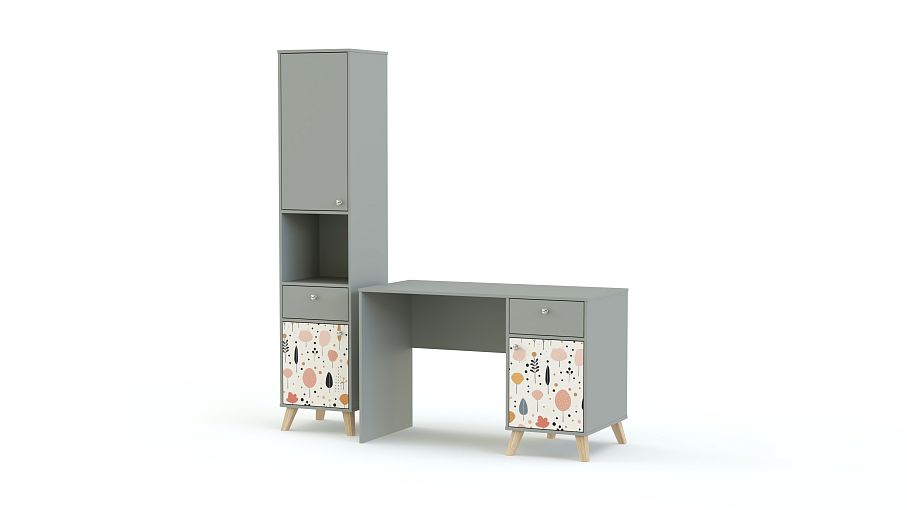 Стол письменный Эльза 6 BMS дополнен удобной системой хранения для учебников, тетрадей, материалов для творчества. Классический прямоугольный стол оборудован тумбой, а рядом располагается комбинированный с ящиком и закрытыми полками стеллаж. Композиция для детской выполнена из прочной ламинированной ДСП в комфортной для глаз цветовой гамме, нижние фасады декорированы симпатичным принтом. Купить стол письменный Эльза 6 BMS вы сможете в нашем интернет-магазине, подобрав цвета и размеры.