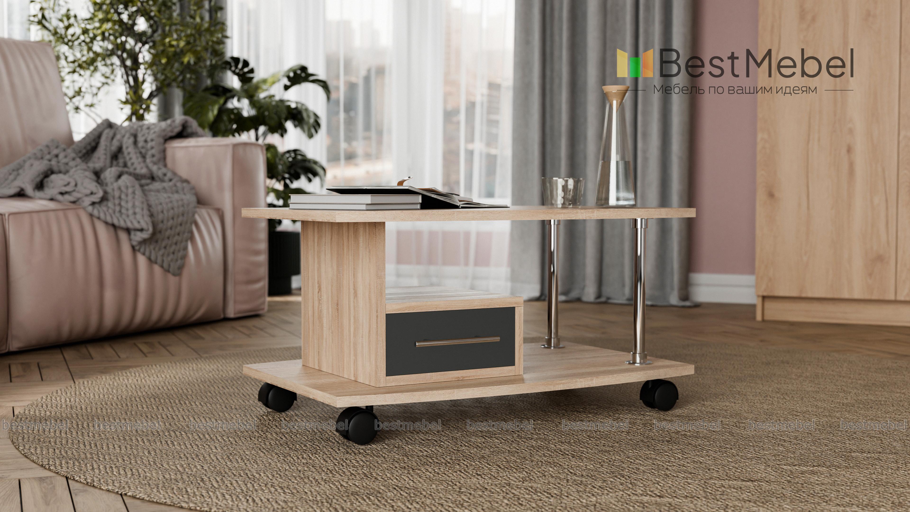 Журнальный столик Пример 162 BMS – это строгая геометрия форм и высокая функциональность, характерная для современных дизайнов. Модель оборудована широкой, чуть скругленной столешницей, основанием с колесными опорами для легкости перемещения и выдвижным ящиком, удобным для хранения мелочей. В оформлении гармонично сочетаются контрастные древесные тона и фурнитура оттенка металлик. Купить журнальный столик Пример 162 BMS приглашаем в наш интернет-магазин по демократичной цене.