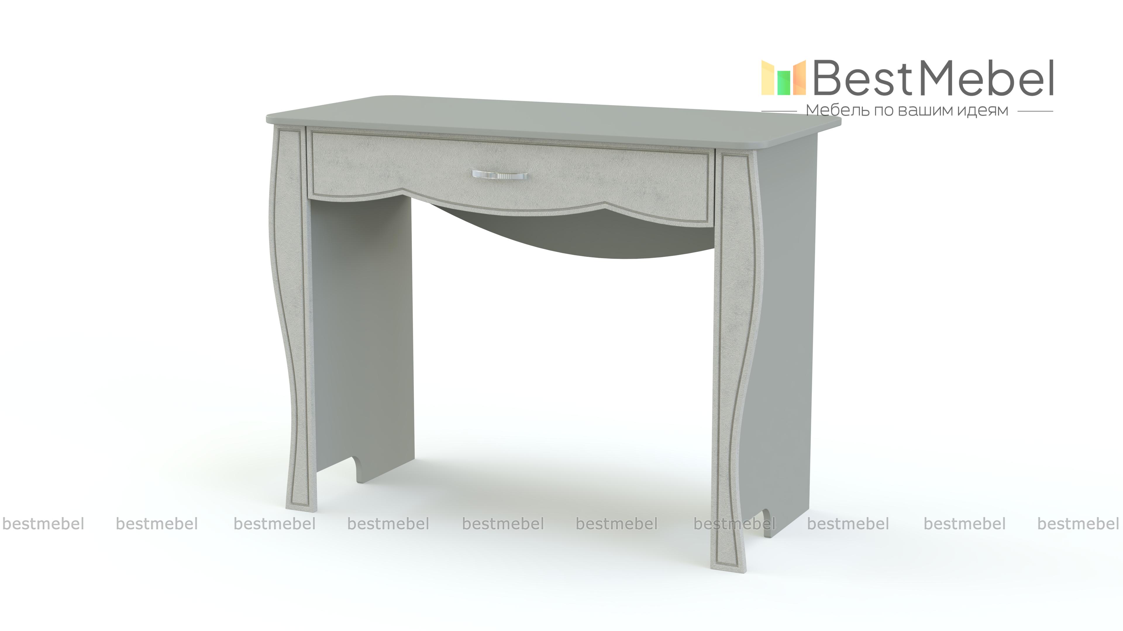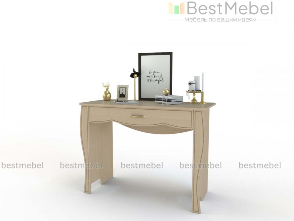 Стол туалетный Кэрри 6 BMS станет изящным дополнением классического спального гарнитура. Выполненный в светлых тонах, столик с фигурно вырезанными накладками на боковинах украшен по фасаду фрезеровкой. Для удобного хранения необходимых средств по уходу под столешницей имеется вместительный выдвижной ящик. Компактный и безопасно скругленный по углам, столик оптимален для небольших комнат. Купить стол туалетный Кэрри 6 BMS вы сможете по доступной цене в нашем интернет-магазине.