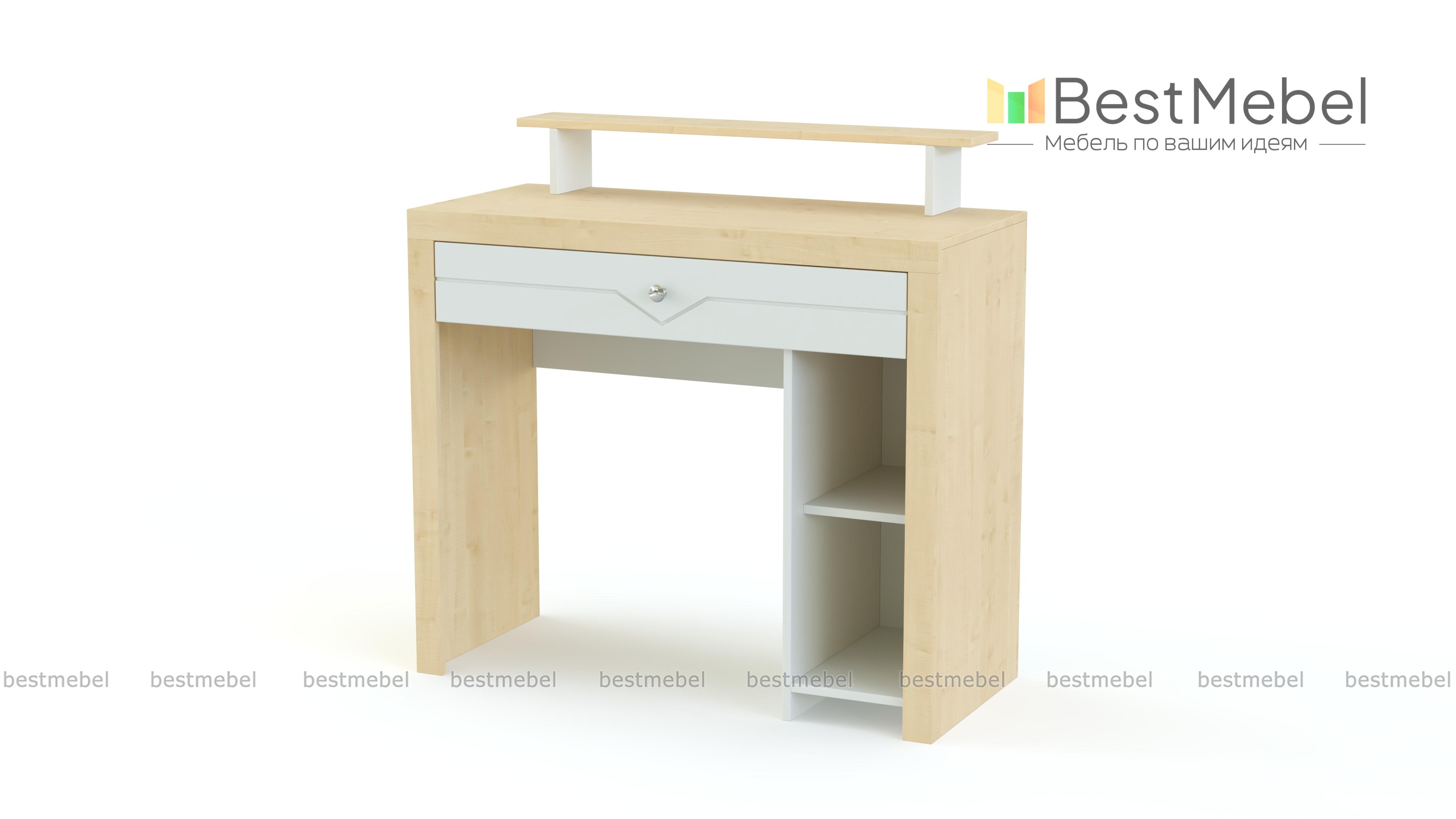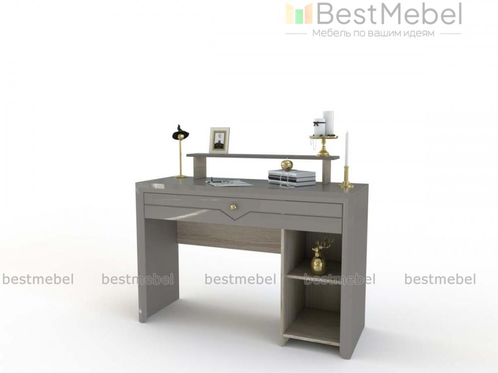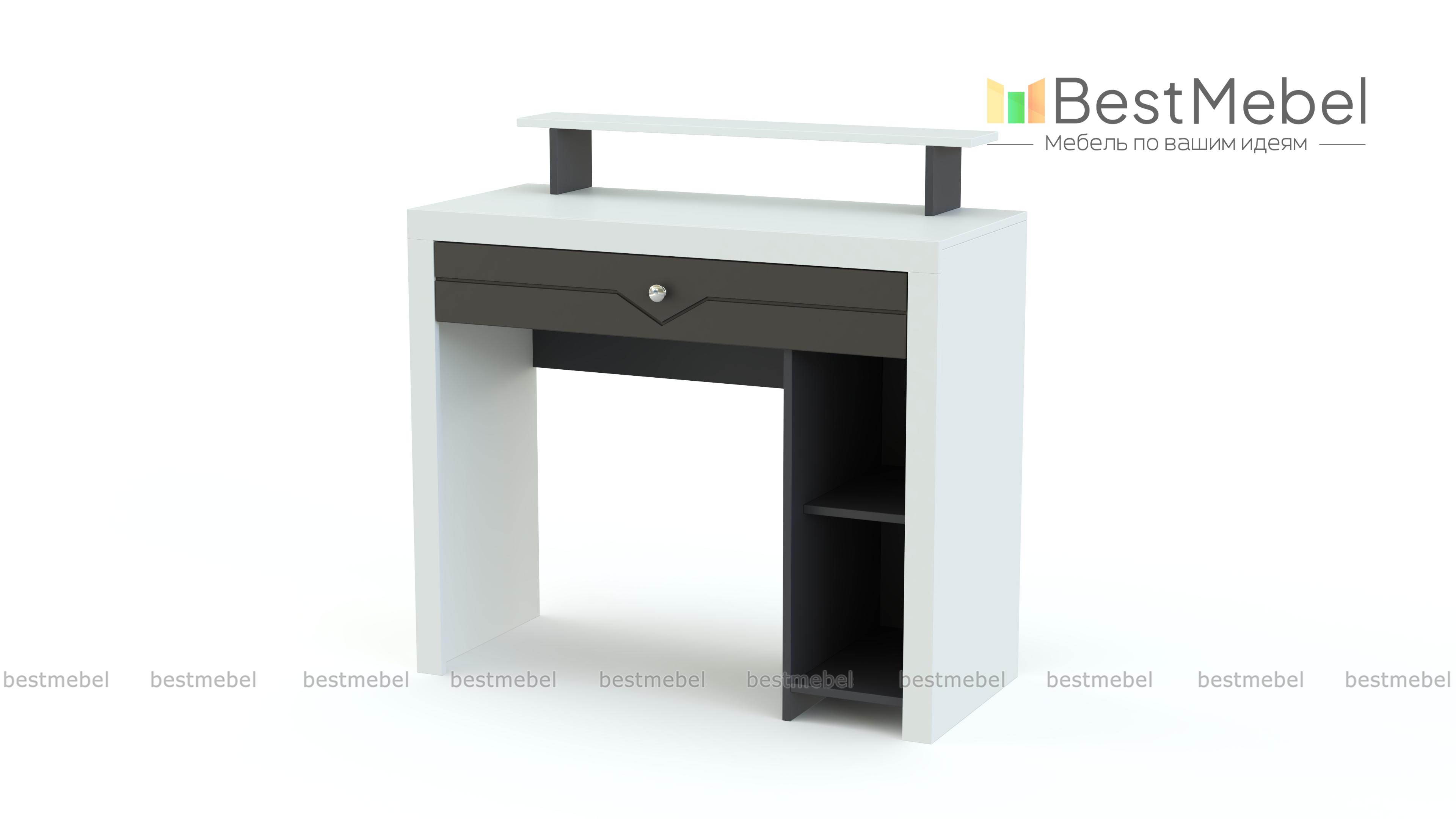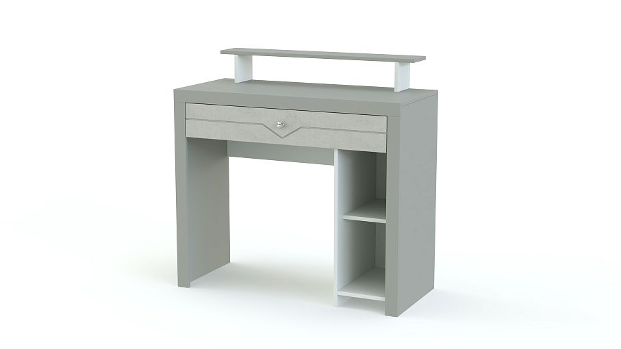 Стол туалетный Хлоя 4 BMS сделает уход за собой комфортным и дополнит интерьер современной спальни стильным акцентом. Выполненная в сочетании матовых тонов и нейтрально-серого оттенка, модель декорирована по фасаду геометричной фрезеровкой. Для хранения в зоне быстрого доступа всех необходимых мелочей конструкцией предусмотрены широкий выдвижной ящик и тумба с открытыми полками, а просторная прямоугольная столешница дополнена надстройкой. Купить стол туалетный Хлоя 4 BMS по лучшей цене вы сможете в нашем интернет-магазине.