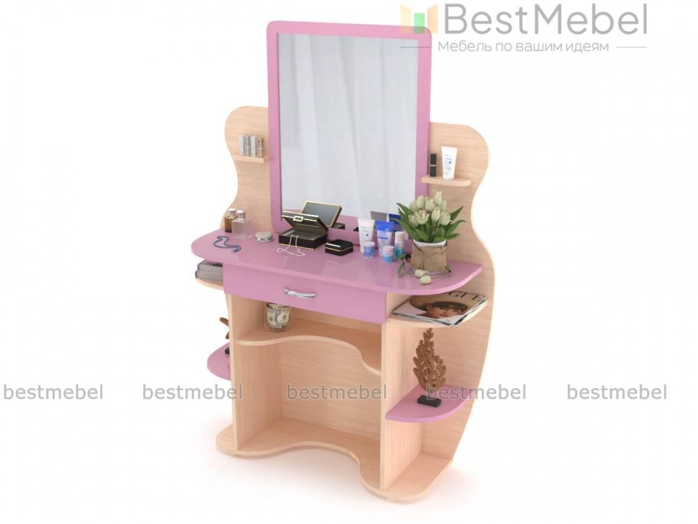 Туалетный столик Яся BMS, изготовленный из безопасной ламинированной плиты в оттенке светлого дерева, предназначен специально для детской. Скругленные полочки и волнообразно вырезанный декор позволяют не бояться острых углов и создают изящный силуэт. Столик оборудован большим зеркалом и ящиком для мелочей, а по бокам и под столешницей располагаются открытые полочки под косметику, аксессуары, декоративные мелочи. Купить туалетный столик Яся BMS вы сможете в нашем интернет-магазине, подобрав цветовую гамму.