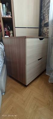 Я обратилась в магазин BESTMEBELSHOP, потому, что мне понадобилась тумбочка по моим размерам. На сайте я выбрала из дешевых 2 штуки и изменила их размер. На фото видно, какая была тумбочки "Либерти" до изменений. Я значительно увеличила размер. Цена при этом не увеличилась намного. Далее, в разговоре с менеджером я попросила убрать пространство между полом и дном, то есть опустить ее на пол и утопить ящики. Он нарисовал эскиз оперативно. Жаль, забыла его имя: очень понятливый парень! Таких тумбочек я заказала 2 одинаковые .Заказ 00000563401, изделие ЭСКИЗ №00000563401 Тумба прикроватная Либерти ТД-297.03.02 BMS (651х451х645)Ждала я 2 или 3 недели( было некритично), но в срок мне позвонили из доставки. Я не знаю конкретно, откуда их везли. Договорились на поздний вечер, но в результате уже утром их привезли. НО за то, что опоздали, не взяли деньги за занос в квартиру. Спасибо ребятам, видно, что уставшие.Сборка была качественная: все детали на месте, разметка совпала, все обозначены наклейками. ( потом эти наклейки размачивала тряпкой, чтобы оторвать)Я довольна такой четкостью исполнения. Грамотно все сделали. Особенно мепеджер.