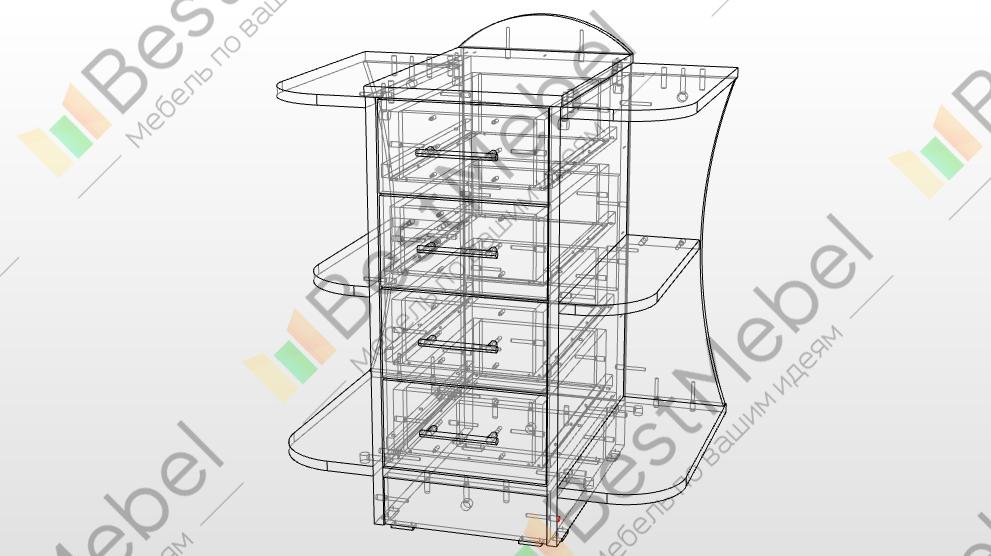 Тумба Рокси 14 BMS с фигурно вырезанной задней стенкой и фрезерованным в стиле сканди фасадом сочетает в себе практическую и декоративную функции. Уместная в интерьере спальни или гостиной, тумба поможет разместить необходимые под рукой мелочи, книги и предметы декора. Оборудованная четырьмя выдвижными ящиками, модель дополнена открытыми закругленными полками, расположенными по бокам, и бортиком на столешнице. Купить тумбу Рокси 14 BMS вы сможете в нашем интернет-магазине с выбором фурнитуры и цвета по каталогу.