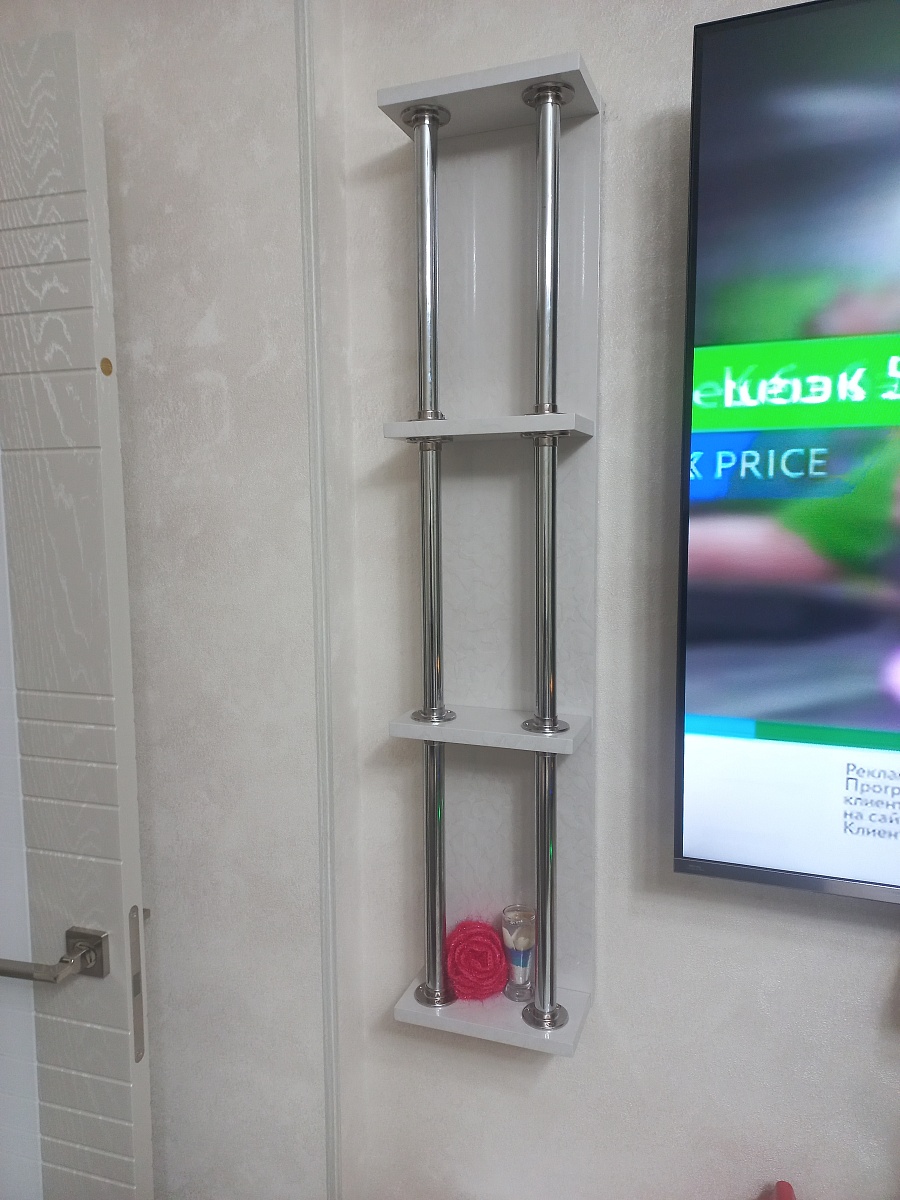 Заказал 2 полки из МДФ, повесил в нишу около телевизора, мне понравилось.