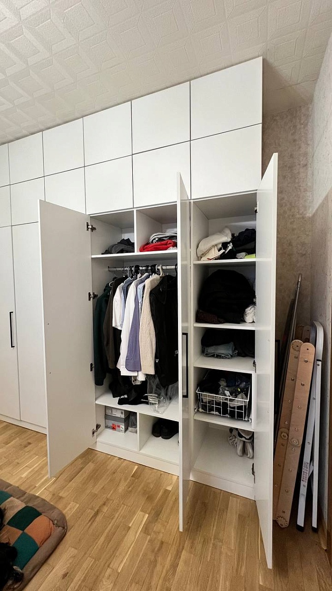 Я недавно приобрела распашной шкаф, заказ 00000873565, изделие ЭСКИЗ Шкаф распашной Остин Нео 11 BMS (2500х2600х500). Хочу поделиться своим опытом. Выбор пал на модель с классическим дизайном, который отлично вписался в интерьер нашей спальни. Плюсы: Удобство использования: Двери шкафа открываются плавно и тихо, что крайне важно для нас, особенно вечером. Вместительность: Шкаф огромный! Каждая полка и секция сделали организацию пространства удобной. Мы смогли разместить всю свою одежду, обувь и аксессуары, и при этом все выглядит аккуратно. Дизайн: Элегантный внешний вид шкафа с минималистичными ручками и универсальным белым цветом отлично вписывается в любой интерьер. Он смотрится очень стильно и современно.Время: Сделали и доставили все в кратчайшие сроки.Минусы: Контакт: Заказывали из Беларуси, представителя как такого в стране нет, поэтому, если Вы тоже из РБ, то номера, по которому вы сможете связаться с кем-нибудь из компании не ждите. ОДНАКО, мы написали по имейлу, по которому согласовывали эскиз, и практически сразу с нами связались. Сборка: Номер сборщика был дня три недоступен, это подпортило настроение. Мы пошли тем же путем: написали через интернет почту. Следует отметить, что отвечают очень оперативно. На следующей день позвонил другой сборщик и в ближайшее время шкаф уже был собран.  Вывод: В целом, я очень довольна покупкой распашного шкафа. Он стал настоящим находкой для нашей квартиры, помог организовать пространство, и я бы рекомендовала его всем, кто ищет стильное и функциональное решение для хранения вещей.