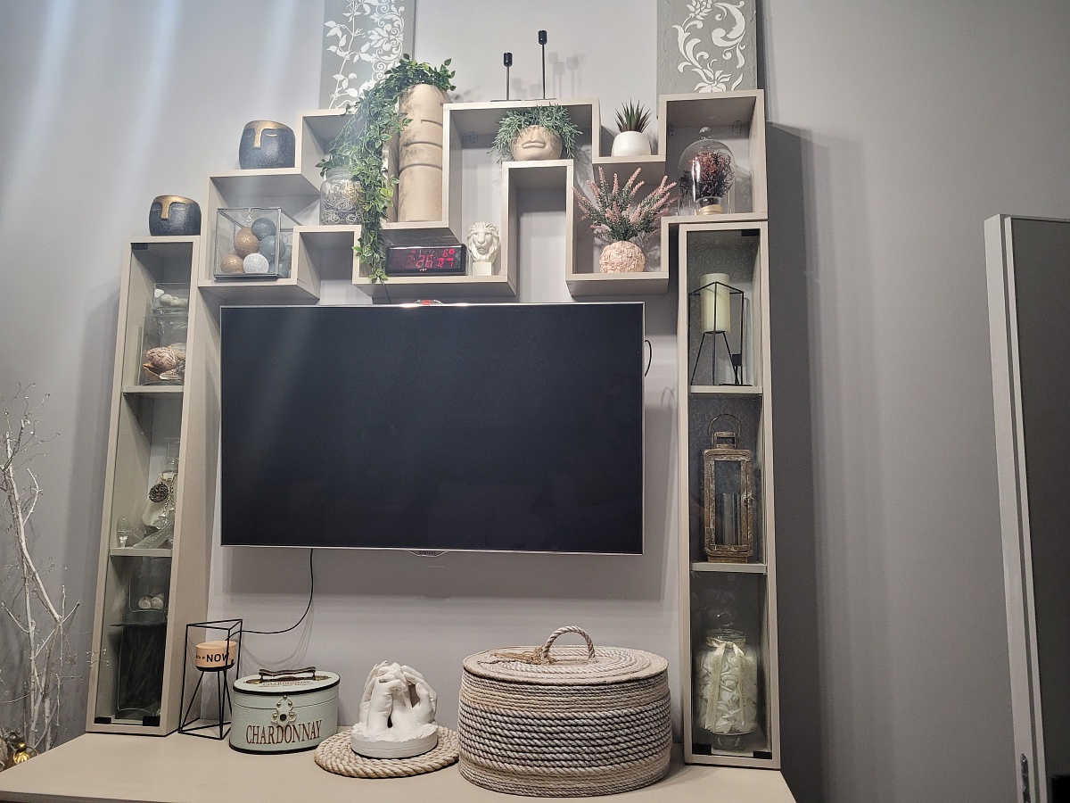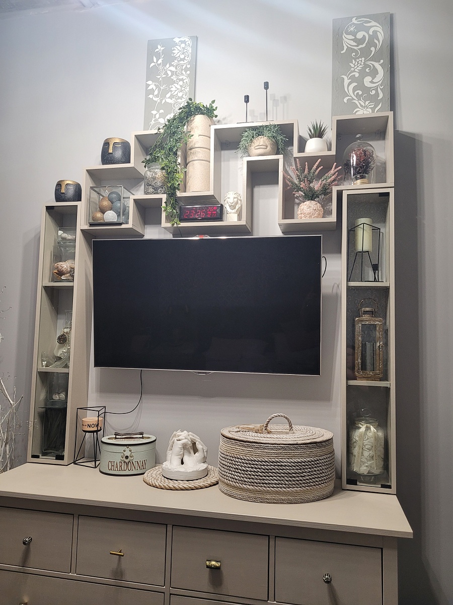 Заказ №1047581 Заказывала в сером цвете, но затем перекрасила её в цвет моих, имеющихся полок и сделали обрамление для тв-зоны. Полка очень необычная, стильная. Заказ выполнен быстро и чётко. Мне понравилось заказывать, тем более у меня были бонусы от большого заказа и они списаны  и зачтены в этот заказ. Рекомендую!