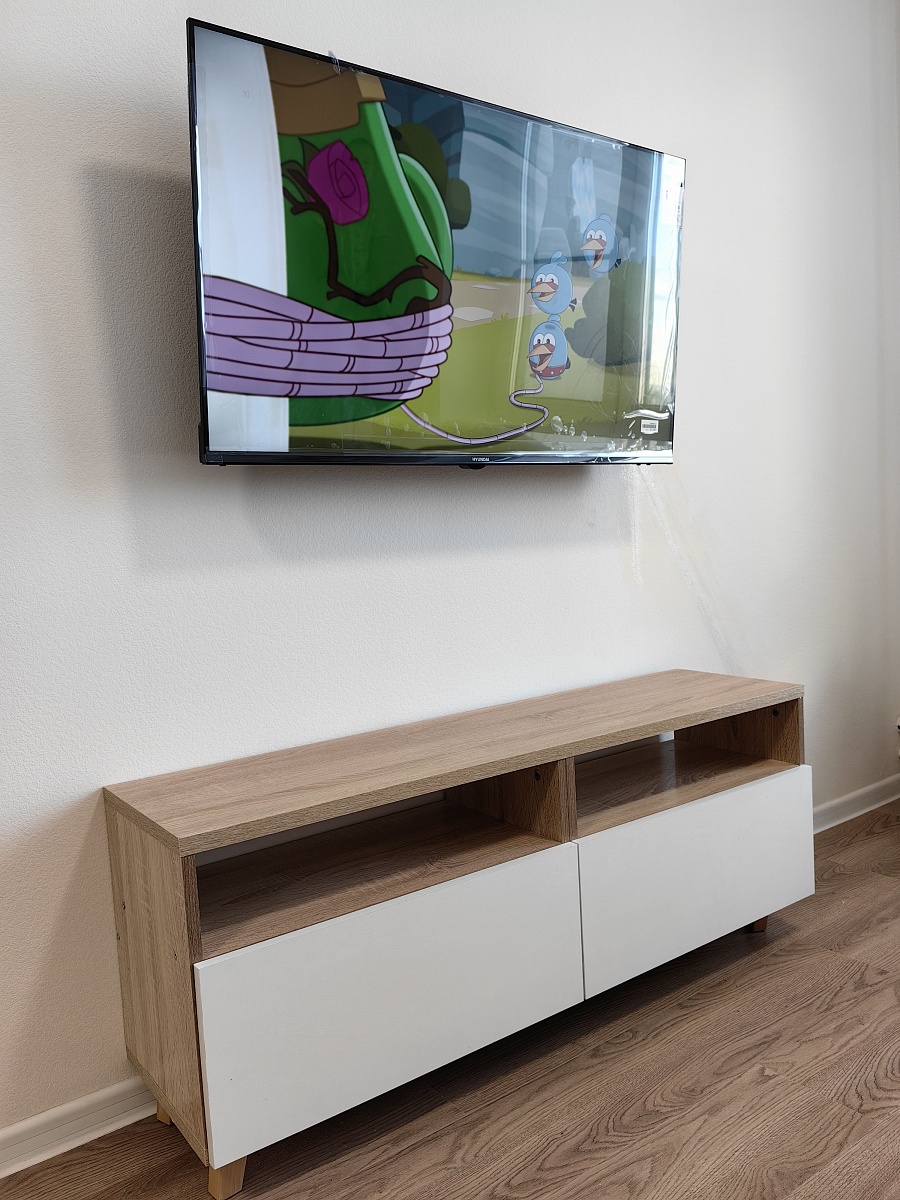 Красивая тумба под ТВ, цвет дуб сонома и белый