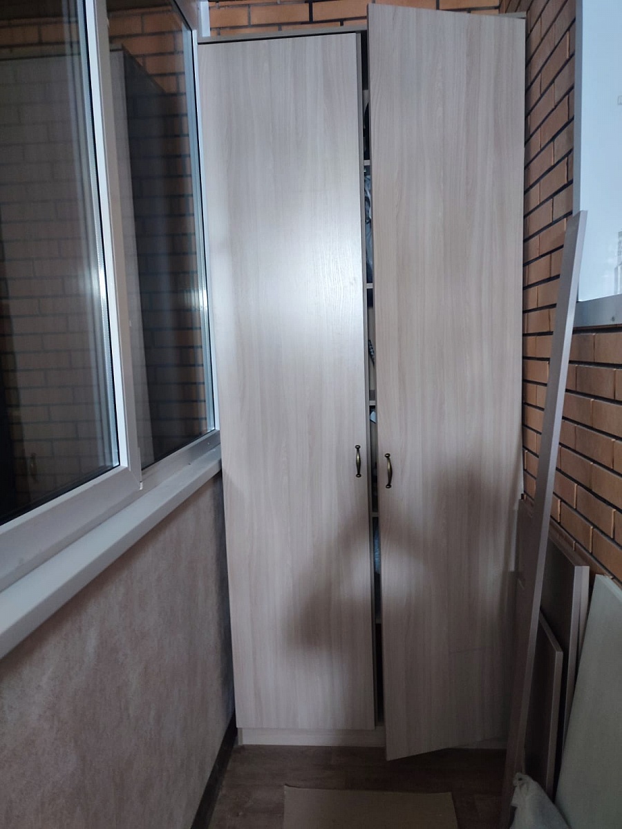 Хороший шкаф, поставили на балкон. Цвет ясень шимо, очень красивый.