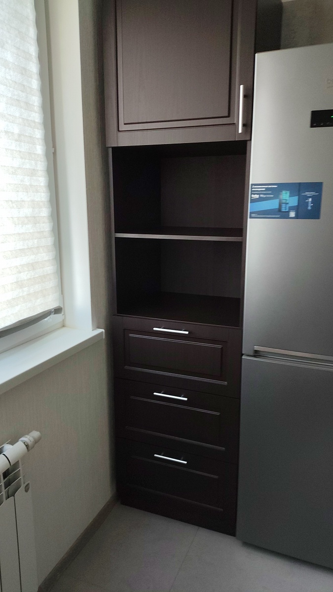 Шкаф пенал Виктория bms изготовили по моим размерам и пожеланиям. Отлично вписался на кухню подошёл и по цвету и по размеру.Отдельно спасибо менеджеру Екатеринае за консультацию и помощь в подборке шкафа.Цвет ,размер благодаря ее профессиональному подходу отлично вписался в мой кухонный гарнитур.