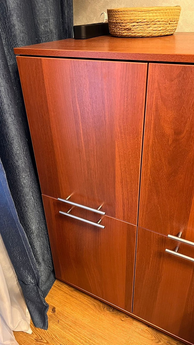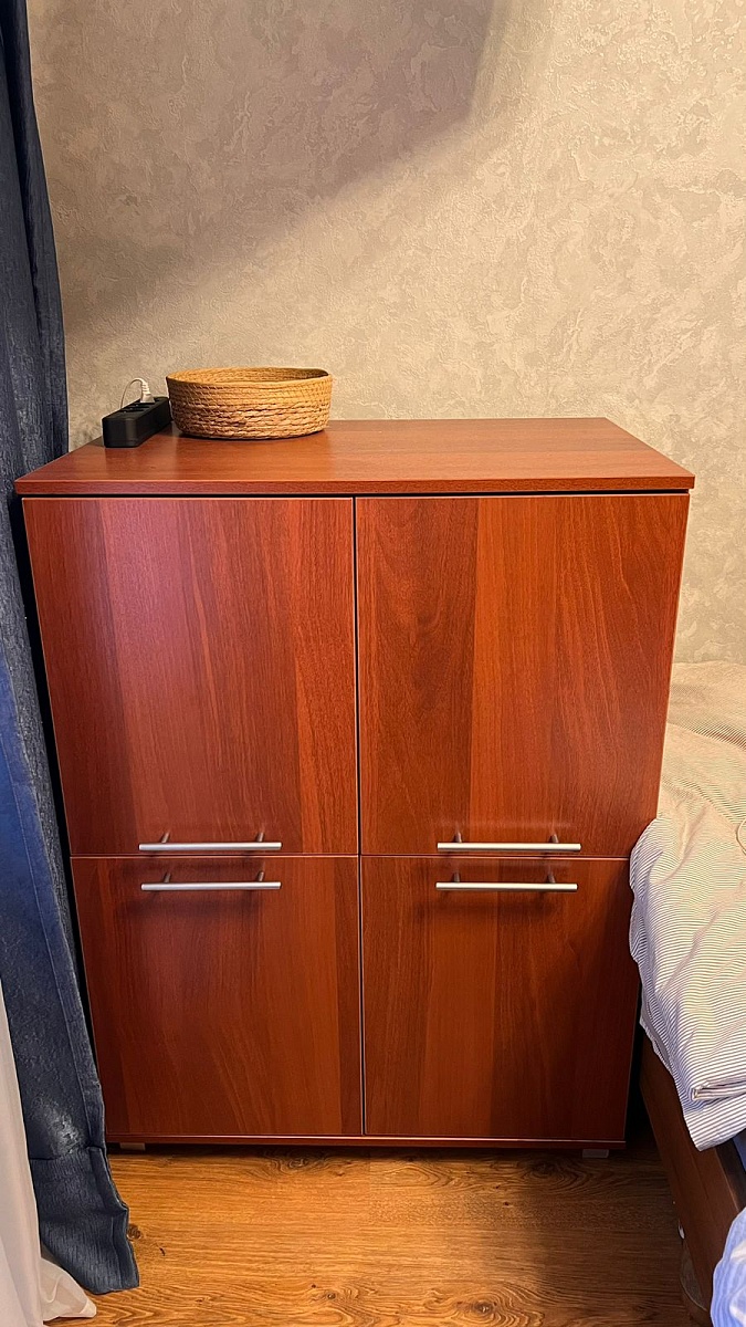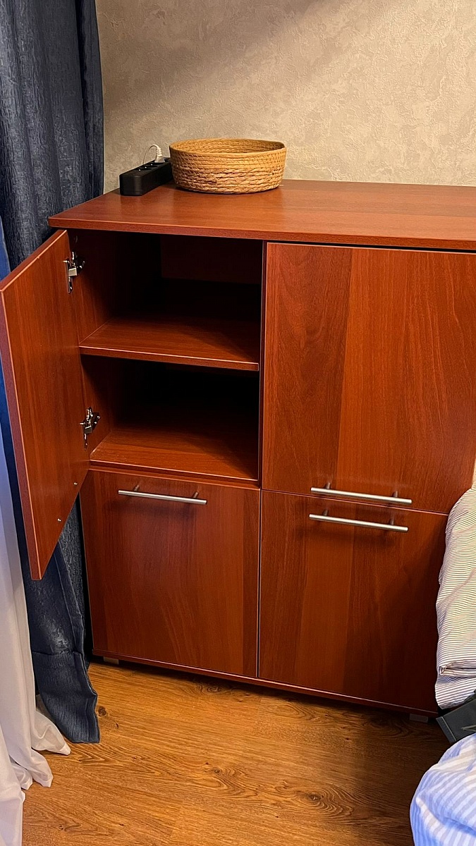Красивая тумба, органично вписалась в интерьер с другой мебелью. Мы брали её для кулера, идеальный вариант. И очень хорошо, что можно изменить размеры, мы уменьшали ширину.