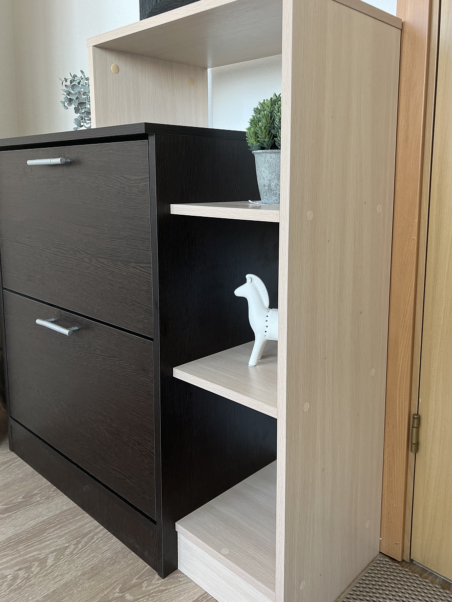 Заказ №1002241. Тумба для обуви отлично вписалась  в интерьер, вместительная.Звонок оператора и оформление заказа было оперативным. Доставка в срок, в оговоренное время. Со сборкой по инструкции справились сами.