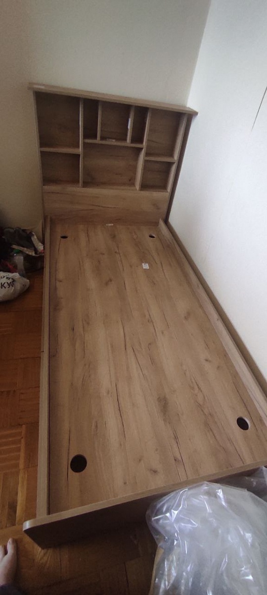Заказала 190х90, ЛДСП в оттенке золотой крафт дуб. Собрали на следующий день, на вид крепкая, полки удобные, ничто не люфтит и не скрипит, довольна.
